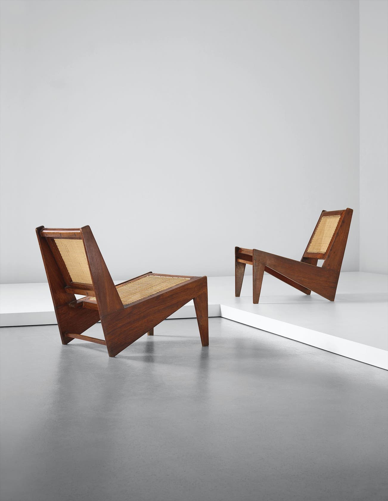 Pair of low chairs, model no. PJ-SI-59-A, designed for private residences, Chandigarh