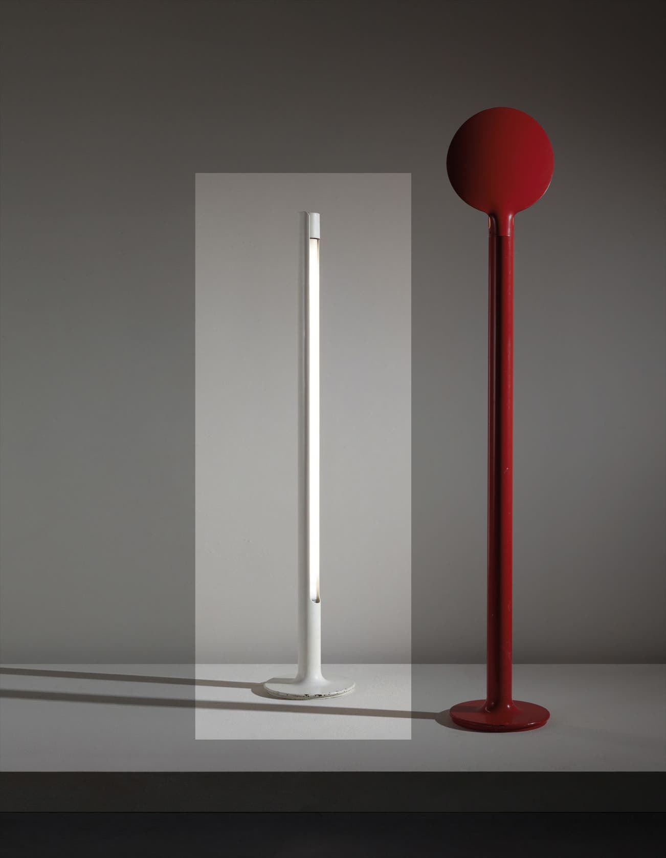 Painted aluminum, painted steel, neon tube.