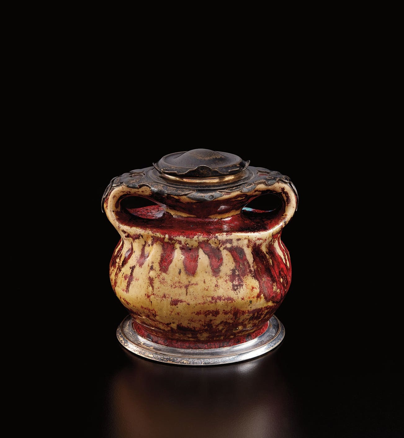 Glazed earthenware, silver.