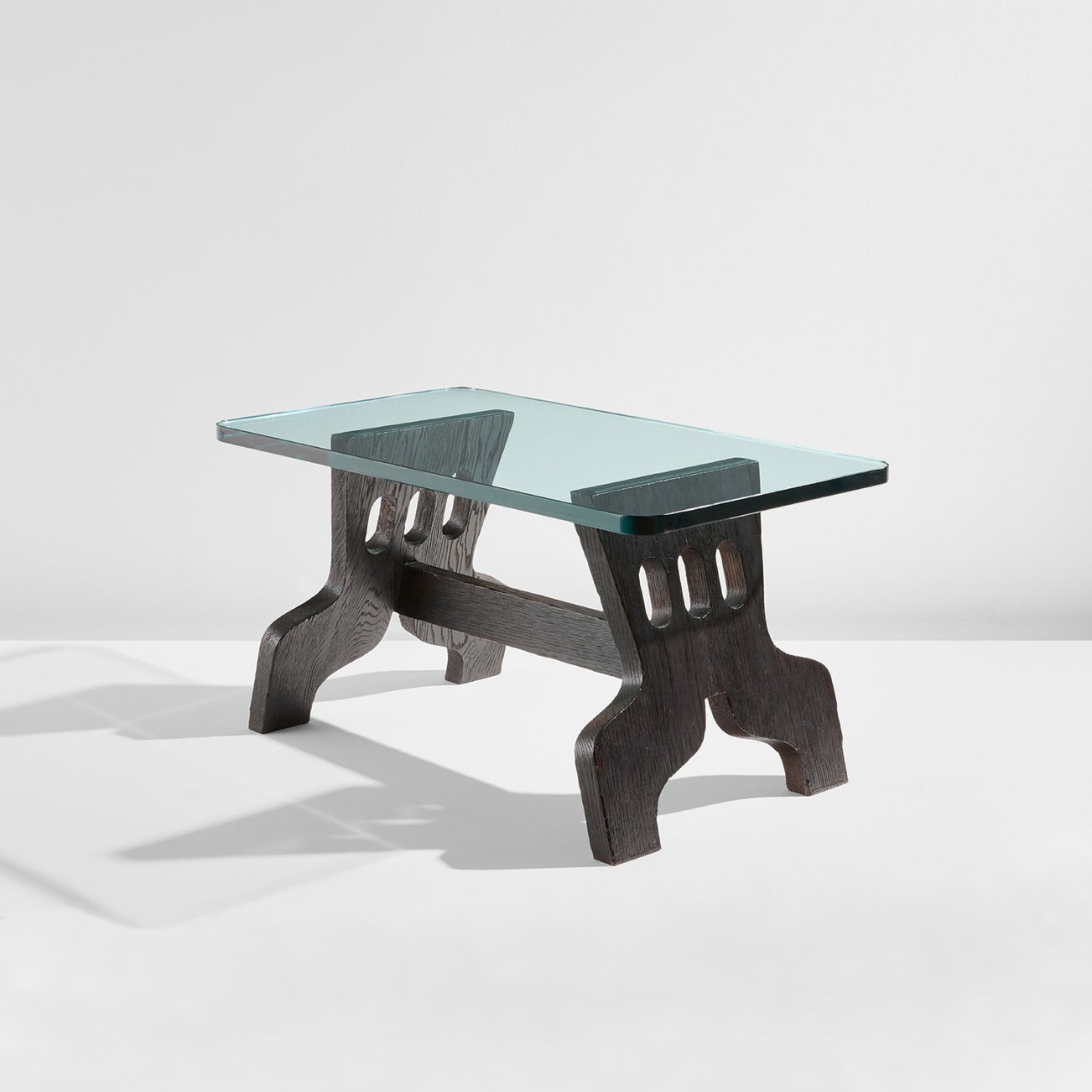 Ebonized oak, glass.