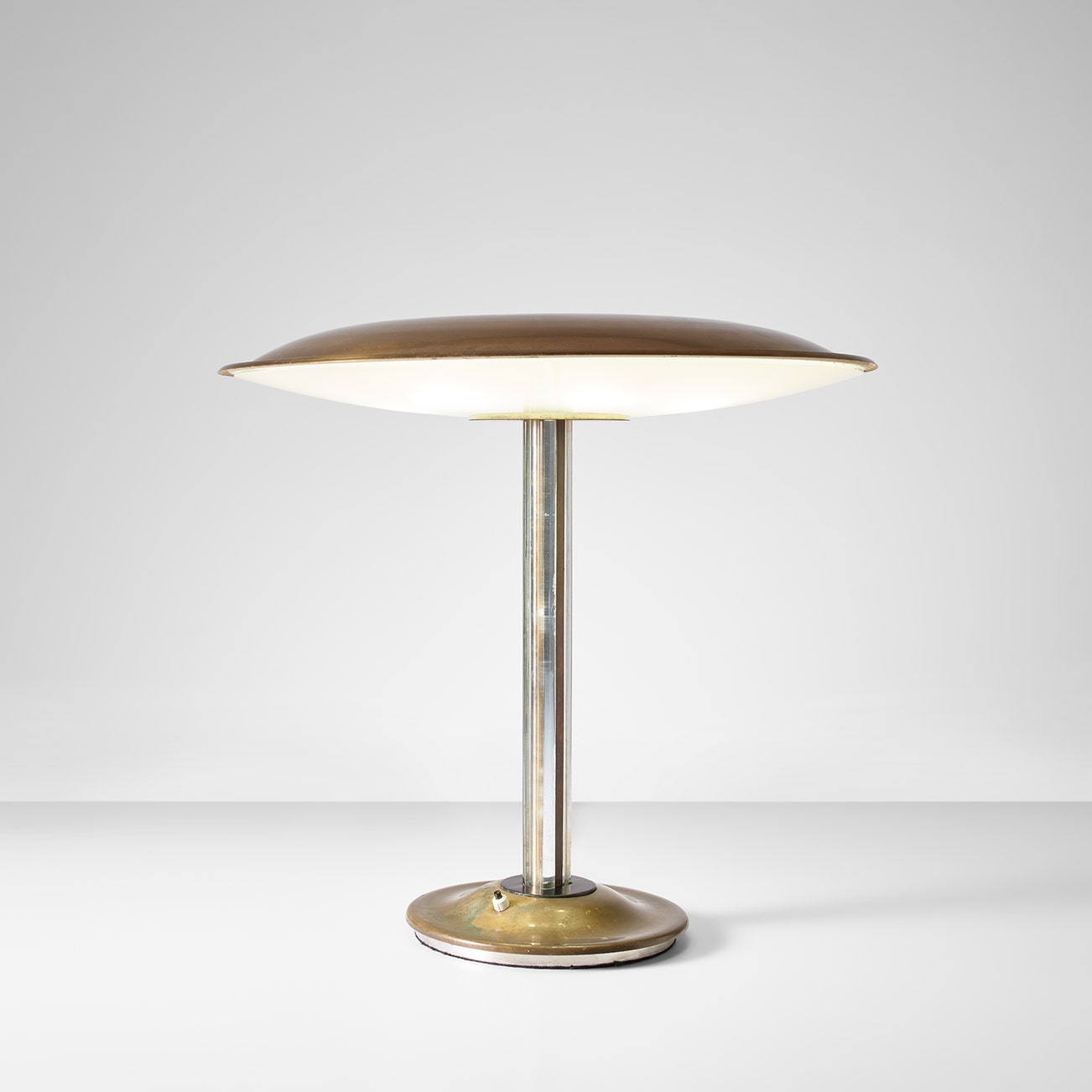 Manufactured by Fontana Arte, Milan, Italy. Top of shade impressed with manufacturer's mark F/X/MILANO, partially faded.