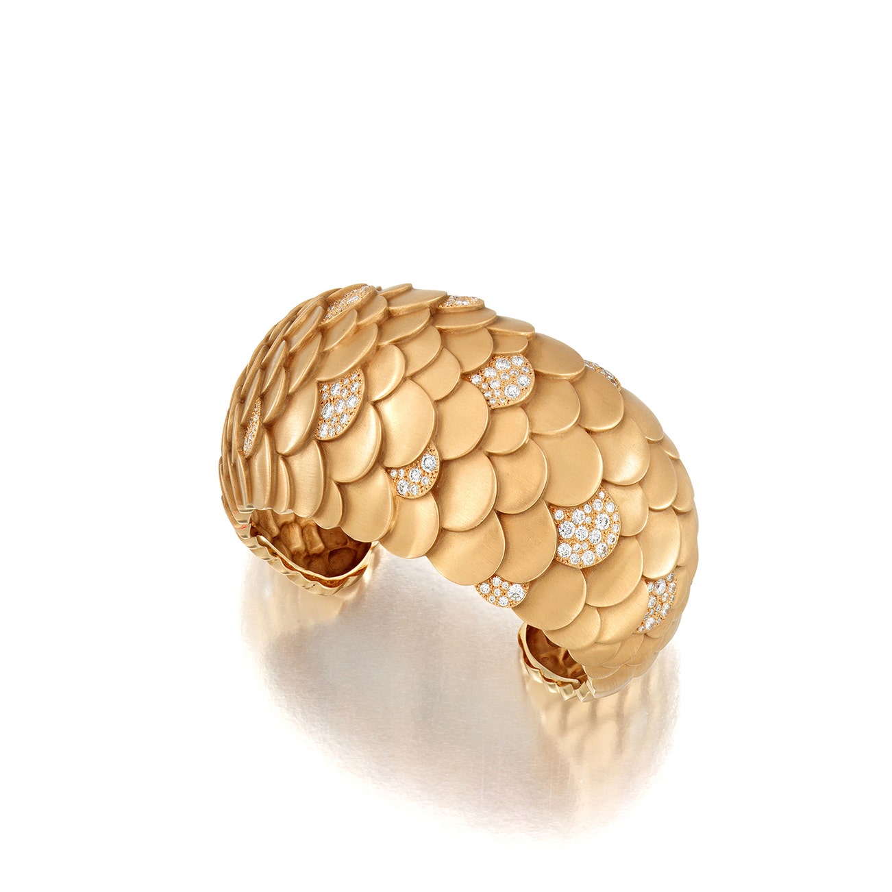 Of scaled design, set with brilliant-cut diamonds, mounted in 18K rose gold, length approximately 6 1/4 inches, width approximately 1 1/2 inches, signed Pomellato, with Italian assay mark and maker's mark.