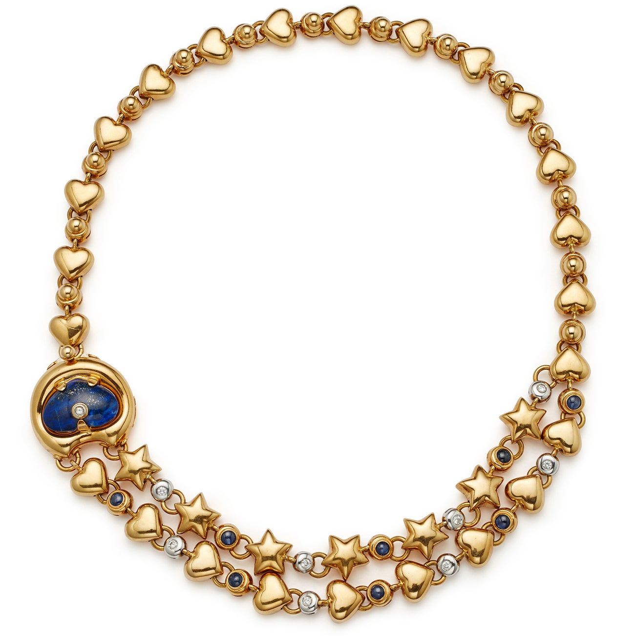 A Lapis Lazuli, Diamond, Sapphire and Gold Necklace