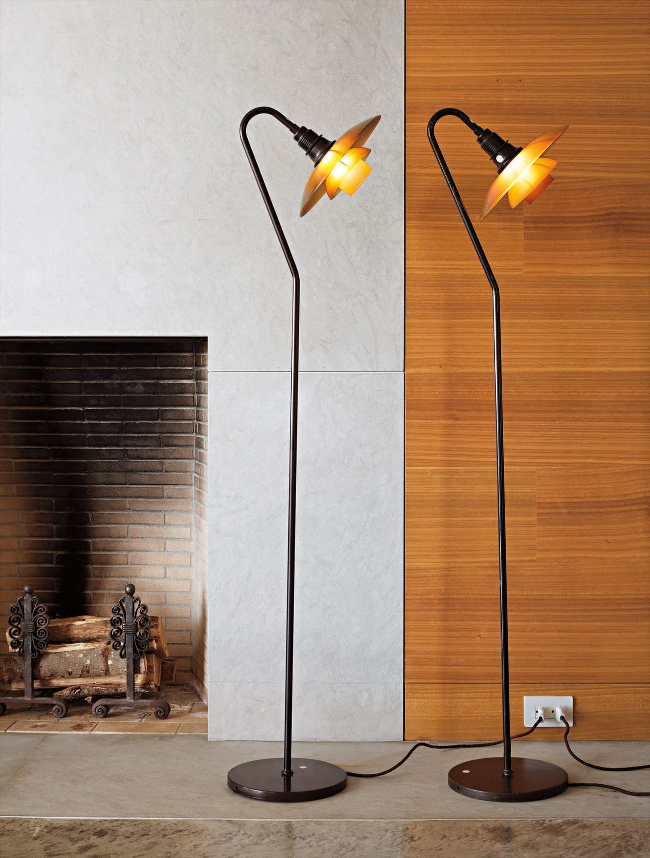 Manufactured by Louis Poulsen, Copenhagen, Denmark. One fixture impressed P.H.-2 /PATENTED, the other impressed P.H.-3 / 2/PATENTED. Underside of each base molded 4332.