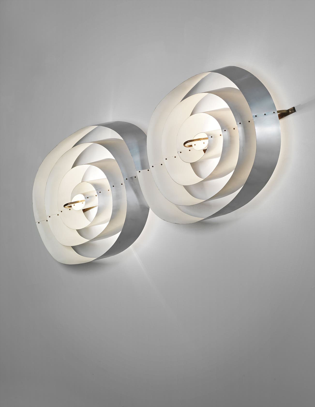 The present lot is one of 26 original double-spiral wall lights from the Scala Cinema and Concert Hall in Århus. In 1981 an extensive renovation dramatically reduced the size of the Scala, during which time 12 of these wall lights were deaccessioned and the other 14 remained in situ.