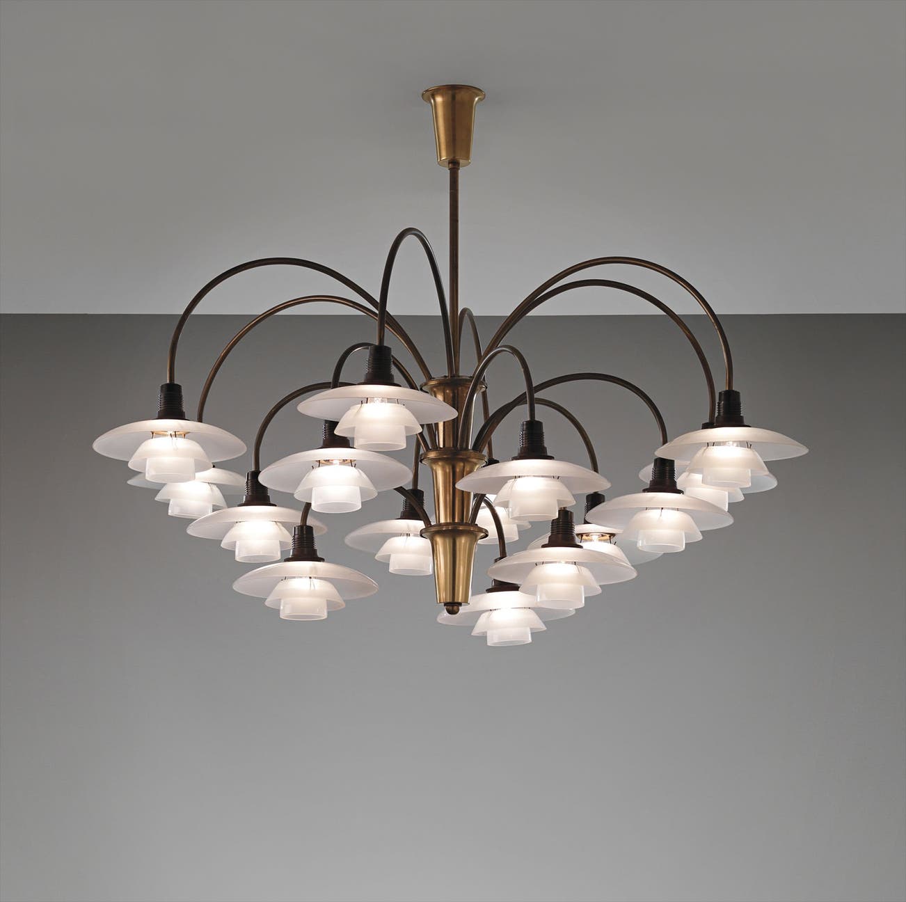 Fifteen-armed “Cascade” ceiling light, type 1/1 shades