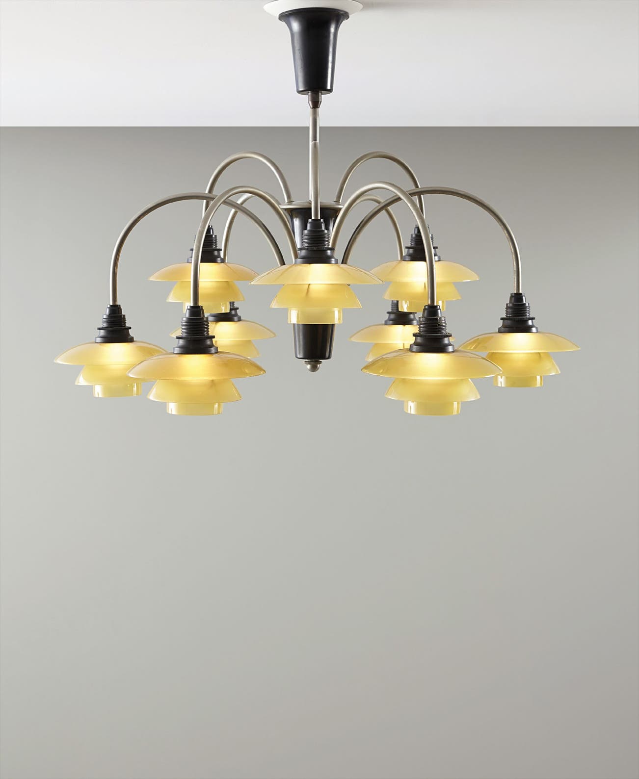 Nine-armed 'Cascade' ceiling light, type 1/1 shades