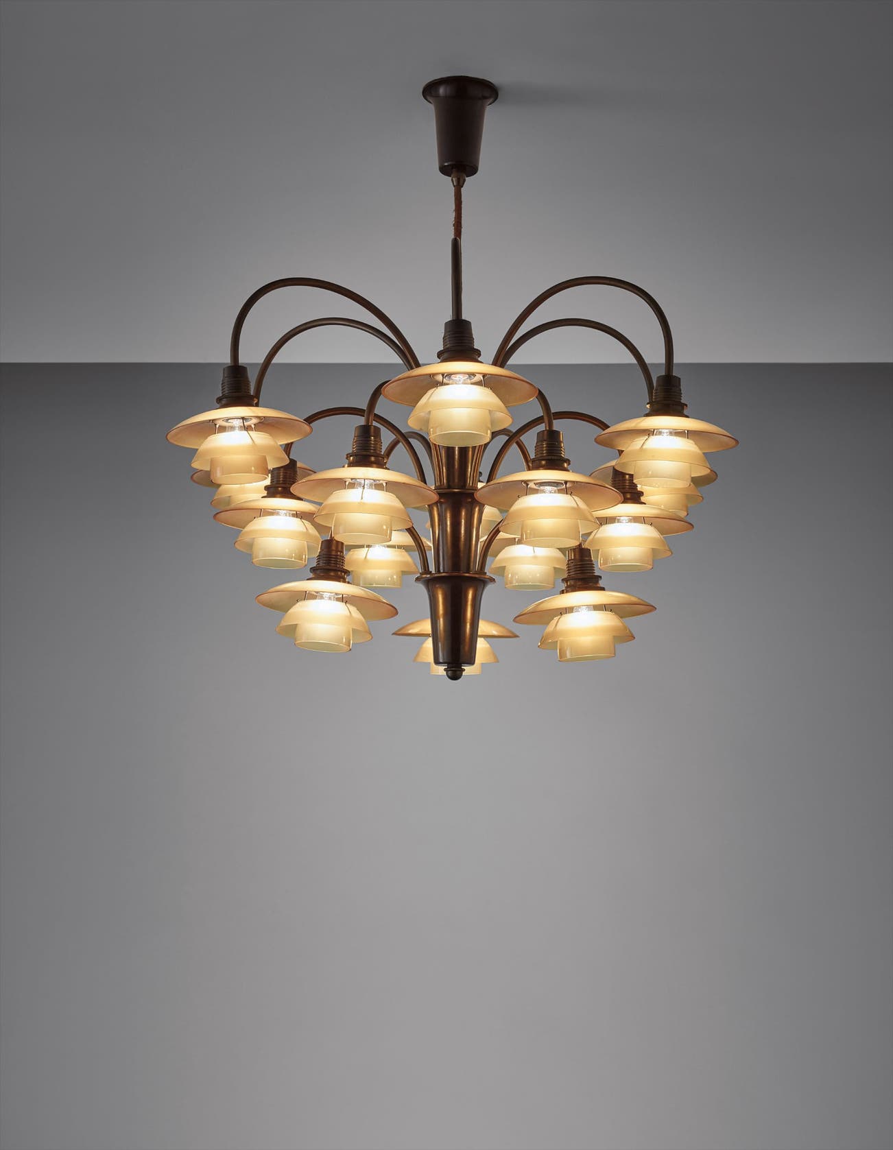 Fifteen-armed "Cascade" ceiling light, type 2/2 shades