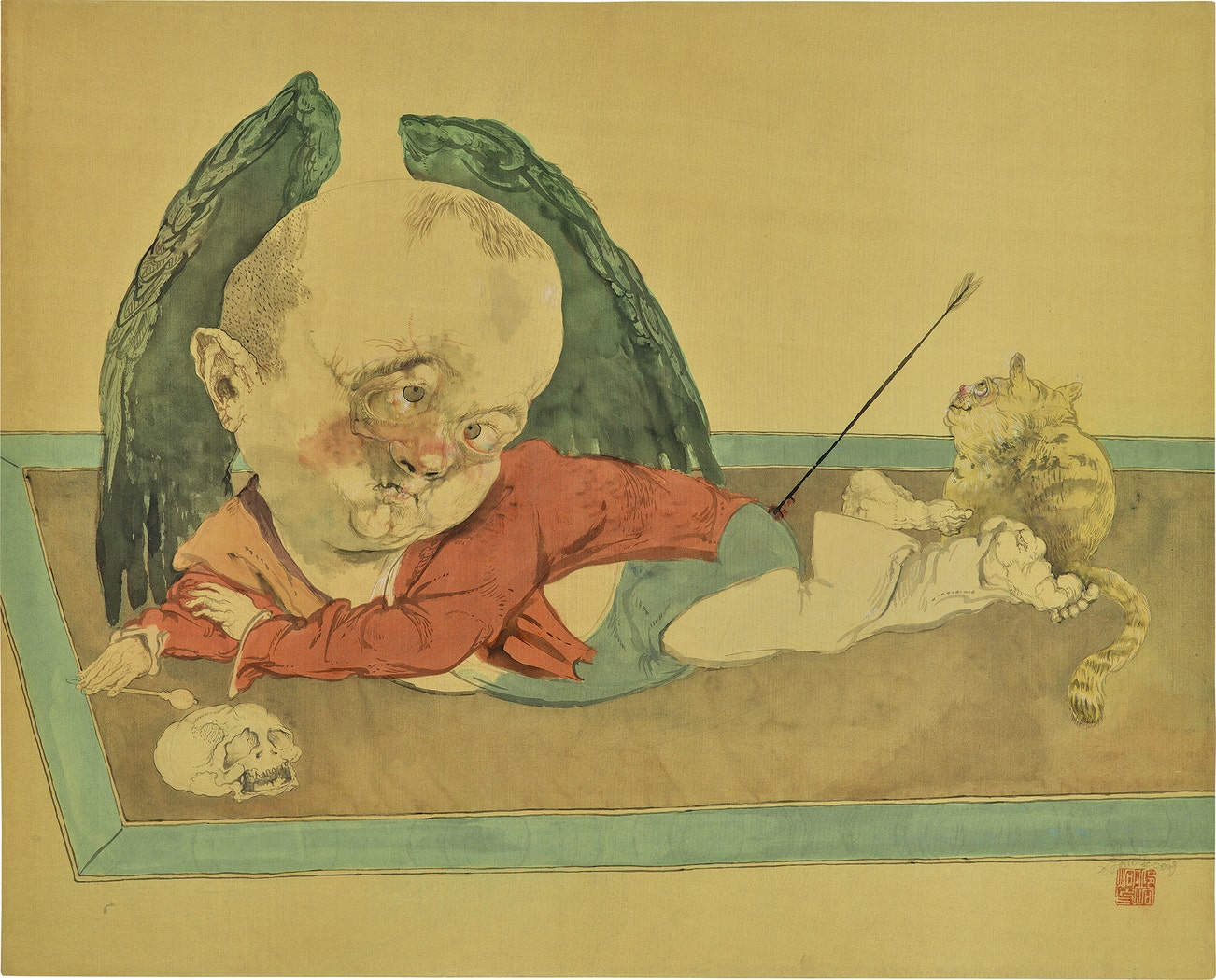 signed, stamped with the artist's seal and dated 'Qiu Jiongjiong [in Chinese] 2009' lower right; further signed, titled and dated 'Qiu Jiongjiong 2009 "Spending the Summer" [in Chinese]' on the reverse
