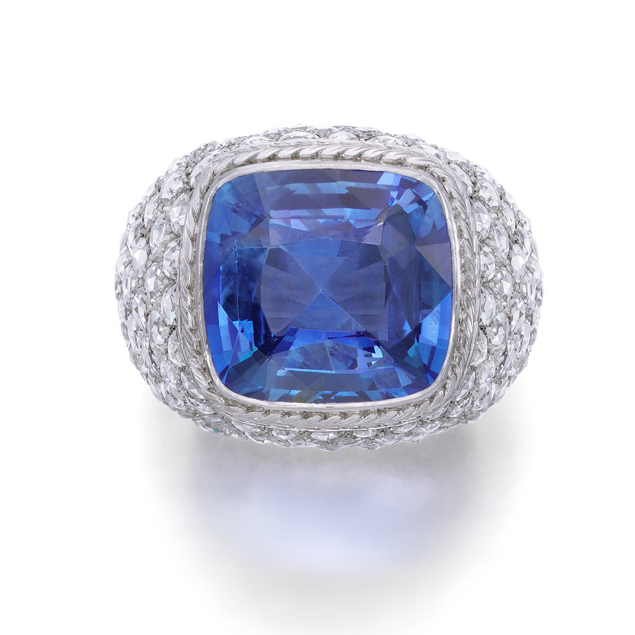 Cushion-shaped modified mixed-cut sapphire, approximately 9.60 cts.