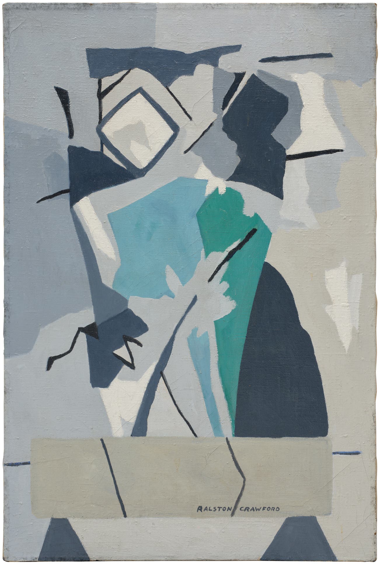 signed "RALSTON CRAWFORD" lower right; signed and titled "RALSTON CRAWFORD "THE GLASS"" on the reverse