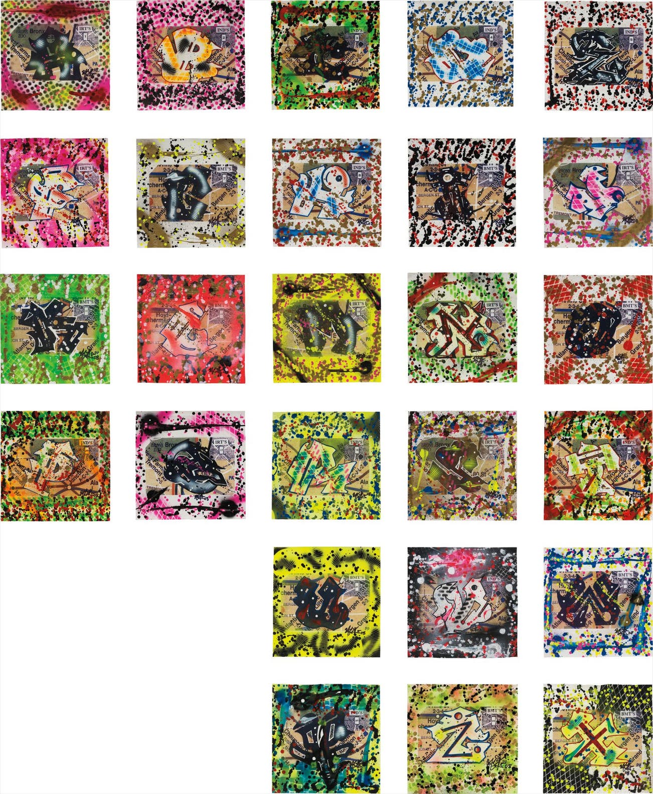 spray paint on canvas, in 26 parts