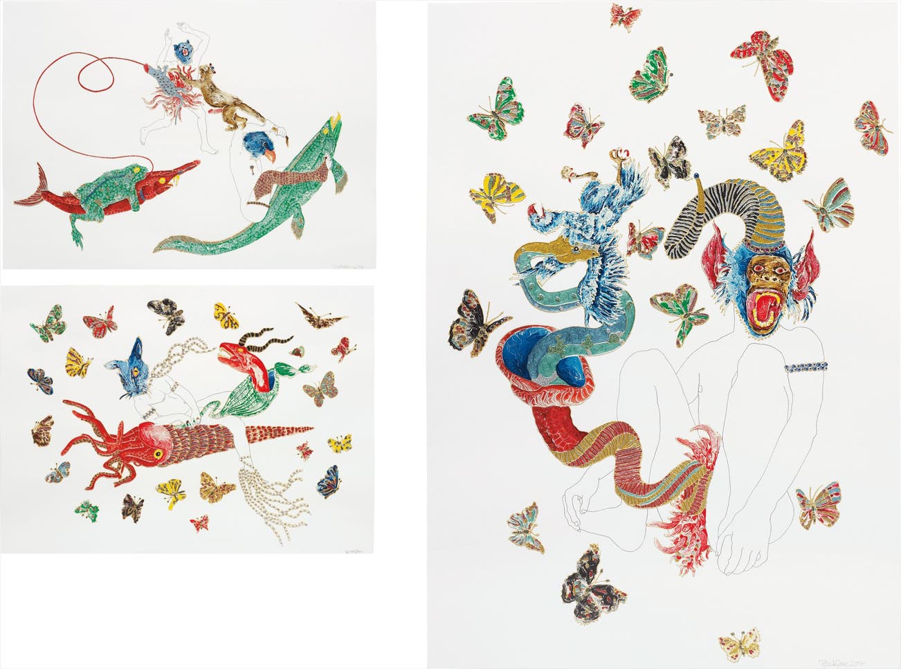 Triptych: Untitled (squid, monkey, fish)
