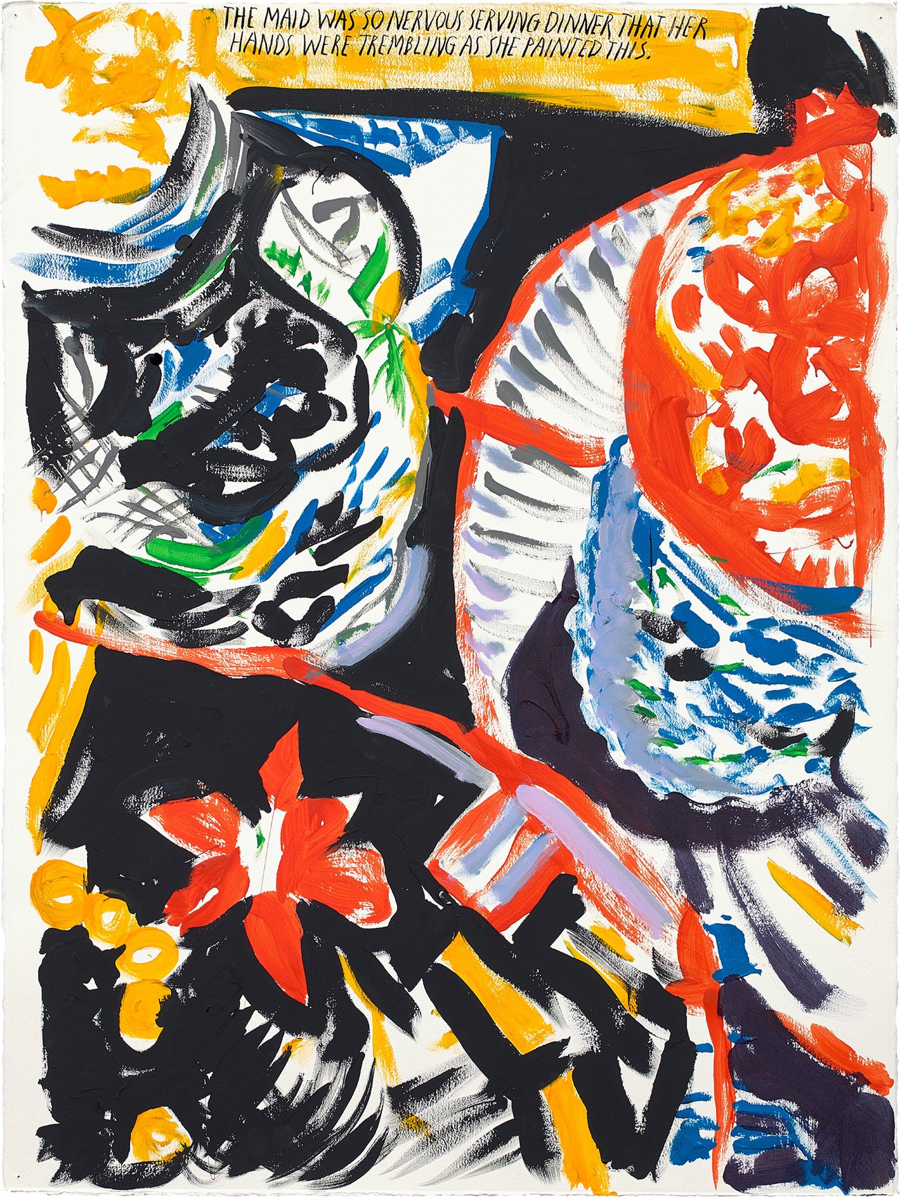 Untitled (THE MAID WAS SO NERVOUS SERVING DINNER THAT HER HANDS WERE TREMBLING AS SHE PAINTED THIS.)
