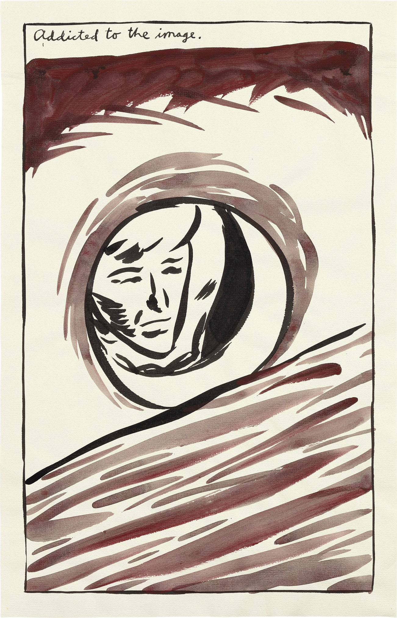 partially titled 'Addicted to the image' upper left; signed and dated 'Raymond Pettibon 87' on the reverse