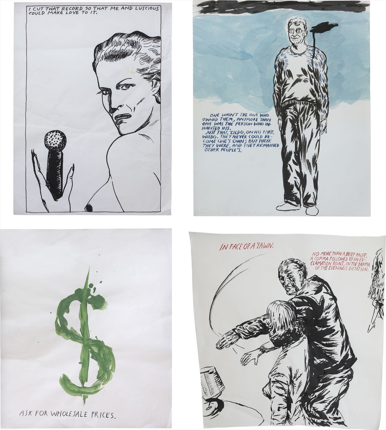 Four Works: (i) No title (I Cut That...), 2004; (ii) No title (One Wasn't The...), 2005, (iii) No title (Ask for Wholesale...), 2002; (iv) No title (In the Face of...), 2005