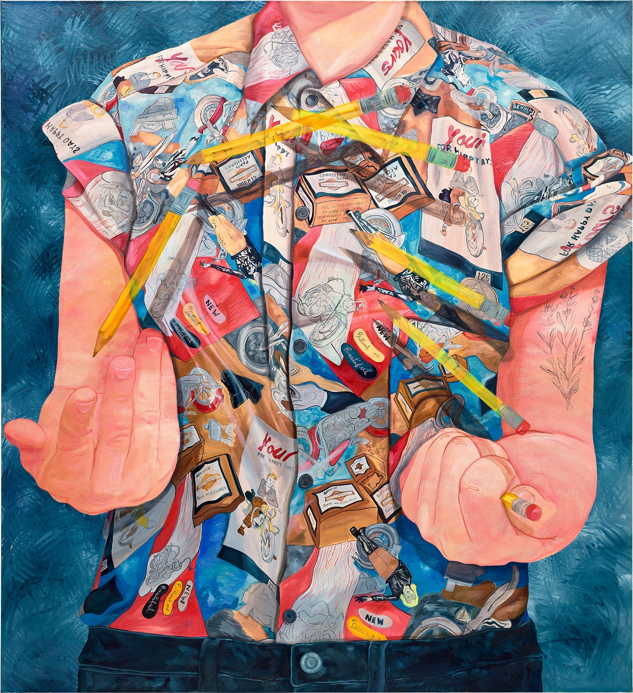 signed, titled and dated ‘“PENCIL FLIPPER” Rebecca Ness R. Ness 2020’ on the reverse; titled ‘Pencil Flipper Pencil Flipper’ on the stretcher