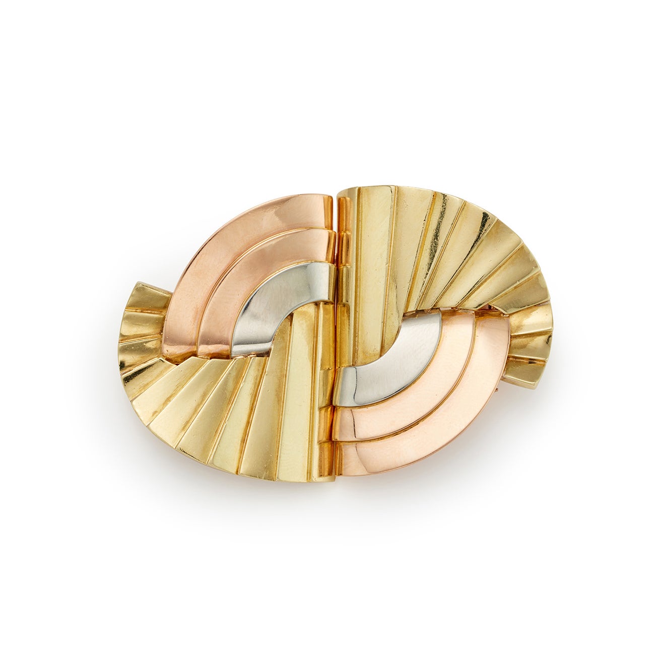 18K yellow, white and rose gold, length approximately 2 1/4 inches, overall, accompanied by a letter of authentication