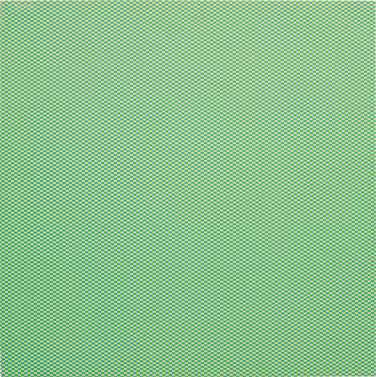 The paintings of American artist R.H. Quaytman are cohesive narratives, which she describes as ‘systems.’ The formal ‘sentences’ which the artist constructs are referenced in the titles of the work. For Chapter 12 iamb (Checkers), Quaytman was inspired by the iambic pentameter of John Milton’s 1667 epic poem Paradise Lost. Quaytman comments that she ‘realized that the sound of the word iamb made it seem right for the title. I love words that have more than one meaning or association.’ (R.H. Quaytman interviewed by S. Stillman, Art in America, 1 June 2010).