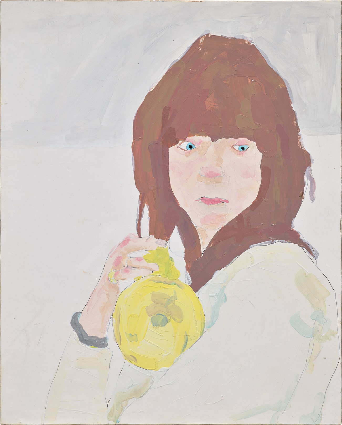 signed, titled, inscribed and dated "Coosie fanni toutie richard aldrich 2002 'Portrait of Cosey Fanni Tutti with Trumpet" on the reverse