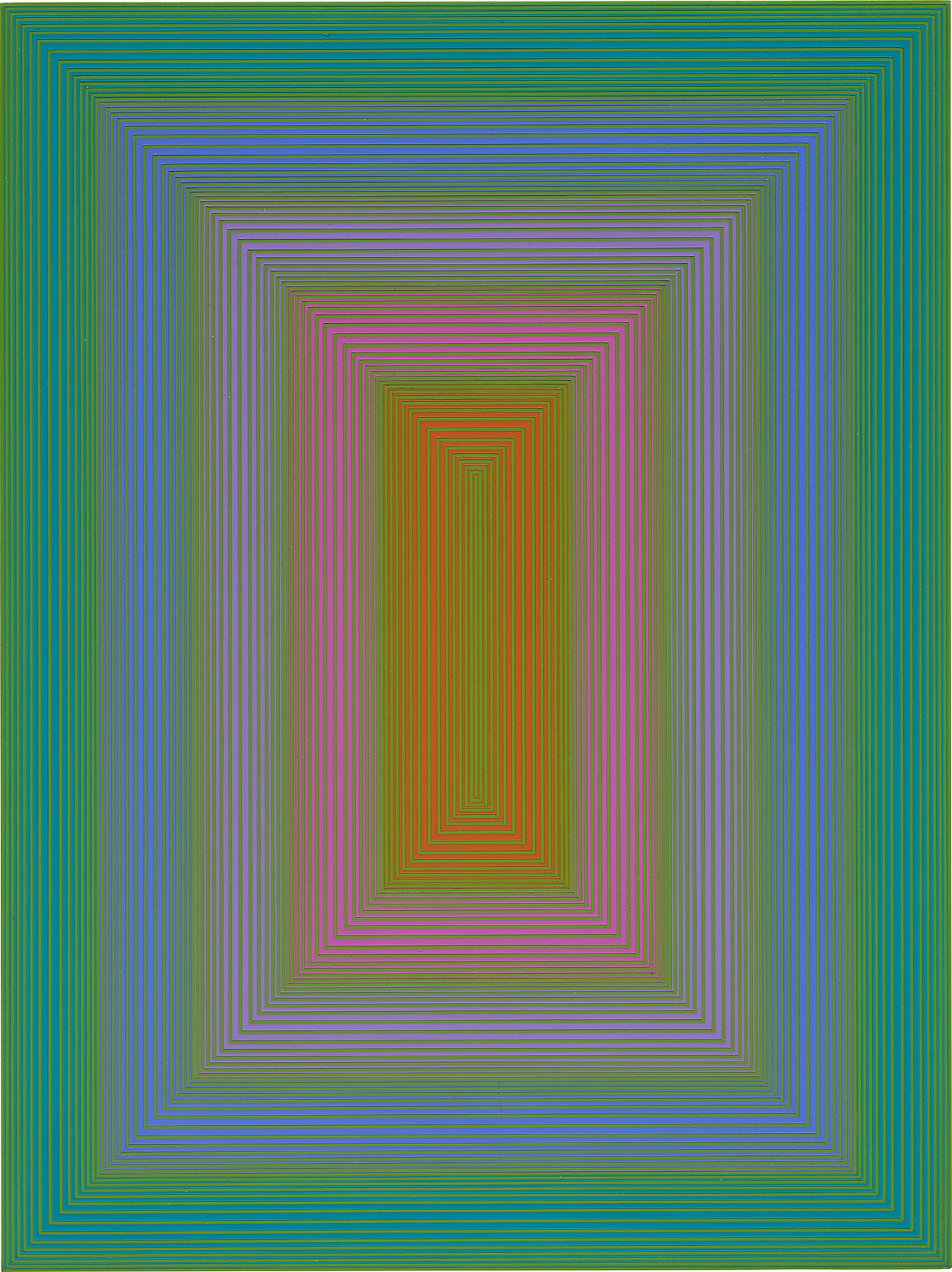 signed, titled, inscribed and dated "905 RICHARD ANUSZKIEWICZ 1971 FOREST GREEN" on the reverse