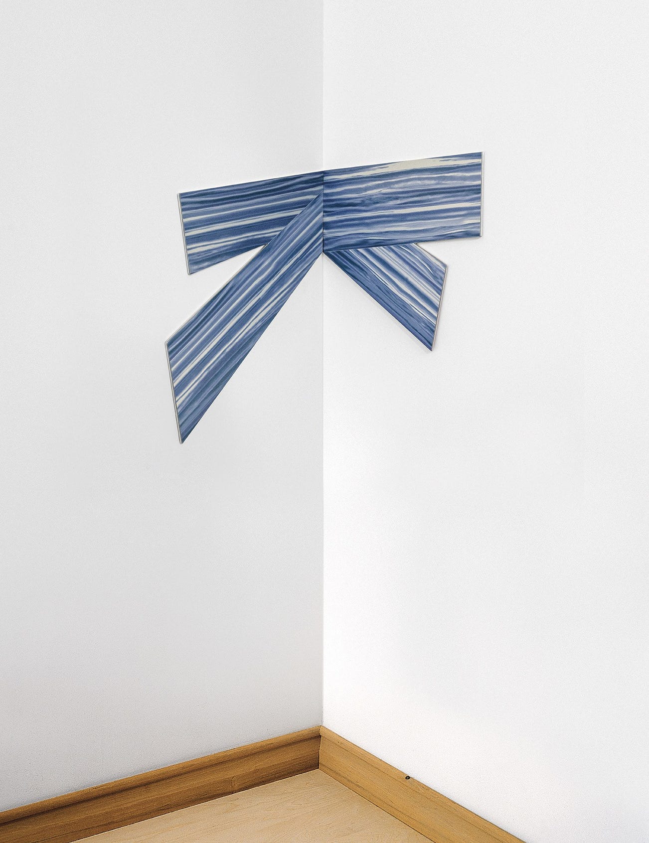 "The Corner Splat paintings ironically imitate Formica, an artificial, stale product of industry whose name has become part of American mass-culture vernacular. Suggesting material as well as perspective in a "fake" way, the Corner Splats stand in the tradition of trompe l'oeil paintings. Hybrids of painting, sculpture and furniture, they confuse our concept of the objects surrounding us and carve out real and imaginary spaces which are exceptions to the hegemonic rationality of everyday life in the West."