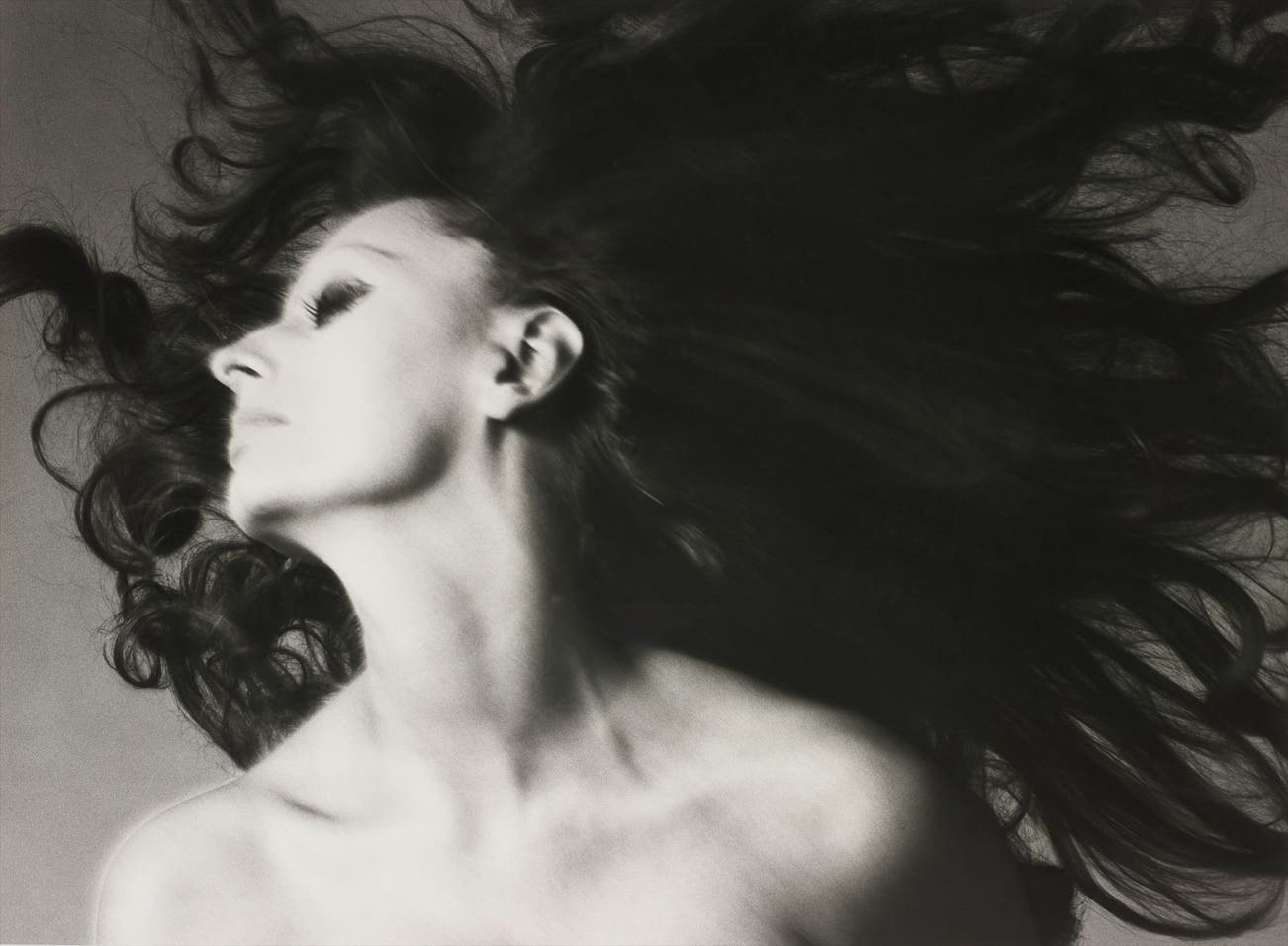 Twiggy, Hair by Ara Gallant, Paris studio, January, 1968 (lot 26) marks the debut of Gallant’s ‘flying hair trick’ as captured in Avedon’s photographs. As Twiggy flips her head up towards the ceiling, her locks flow as though flying of their own accord. Two years later, the collaborative duo revisited this technique for Vogue US with Sophia Loren (lot 27). In this photograph, appearing at auction for the first time, Loren with closed eyes sensually shakes her head from side to side, her hair gracefully filling the entire frame. This illusion remained synonymous with Gallant and no one ever photographed it like Avedon did.