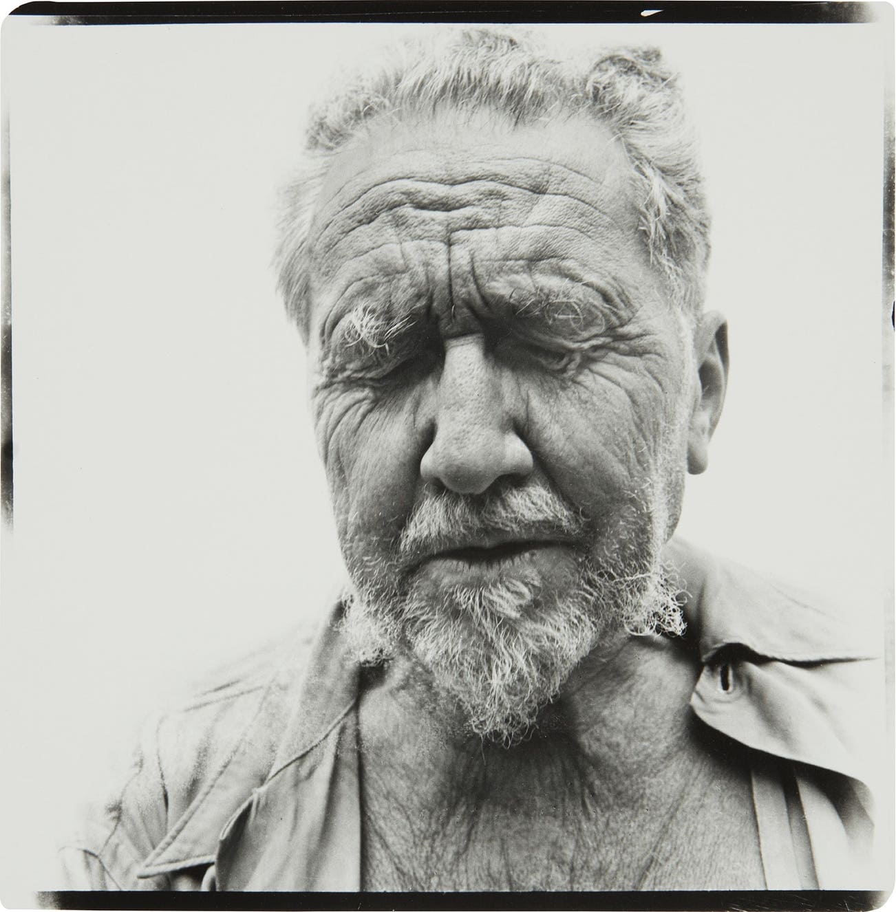 Indeed, as seen in his portraits — whether of famed movie stars or everyday people — the challenge for Avedon was conveying the essence of his subjects. His iconic images were usually taken on an 8 x 10 inch camera in his studio with a plain white background and strobe lighting, creating his signature minimalist style. Avedon viewed the making and production of photographs as a performance similar to literature and drama, creating portraits that are simultaneously intensely clear, yet deeply mysterious.