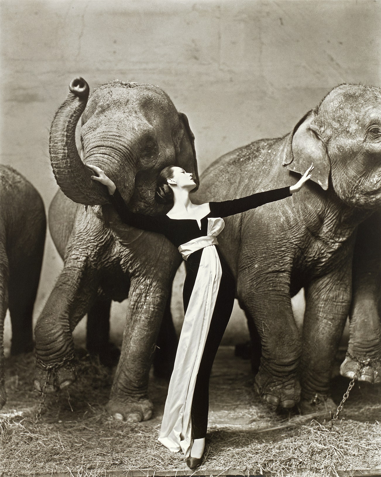 Dovima with Elephants, Evening Dress by Dior, Cirque d'Hiver, Paris, August