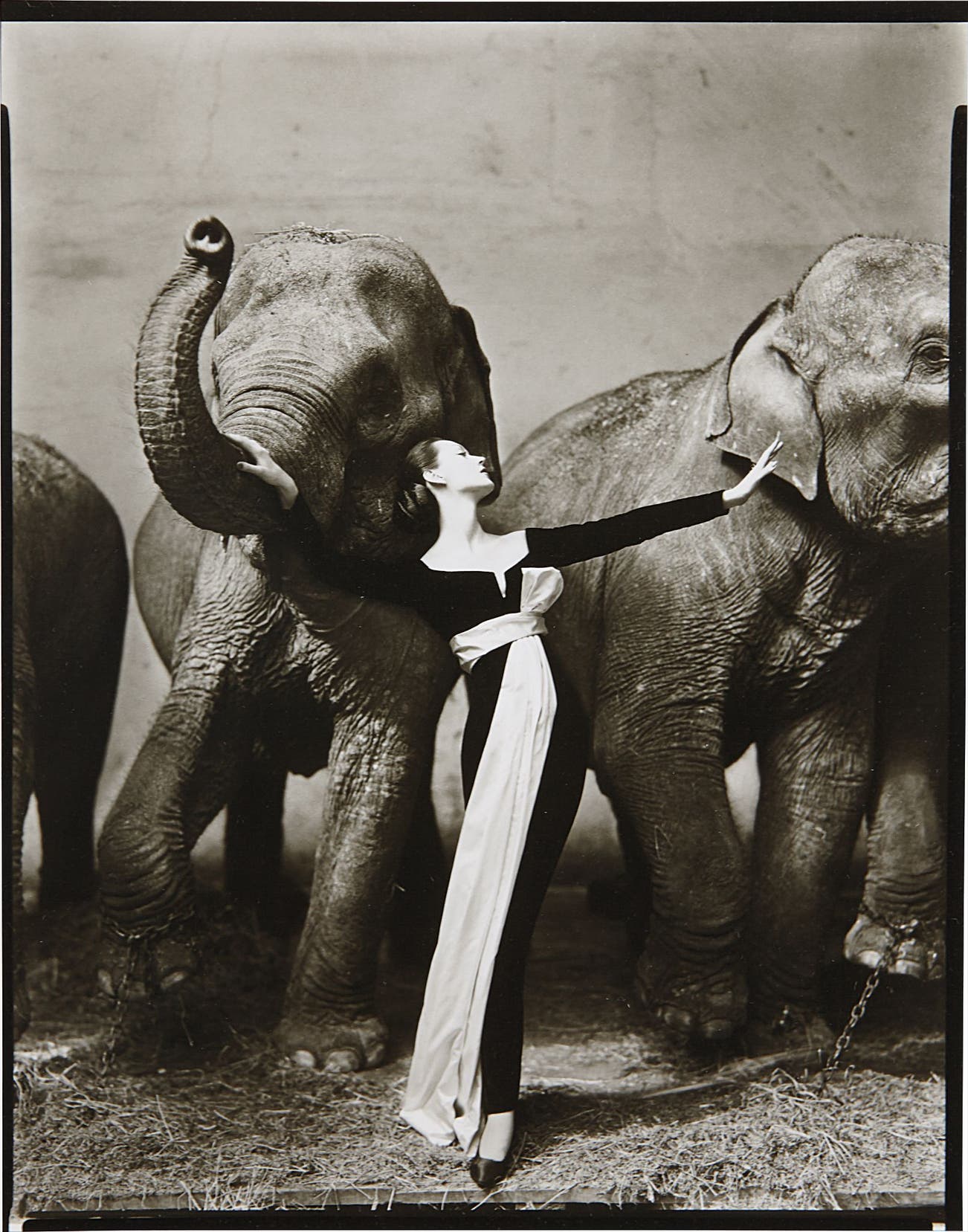 Dovima with Elephants, Evening Dress by Dior, Cirque d’Hiver, Paris, August