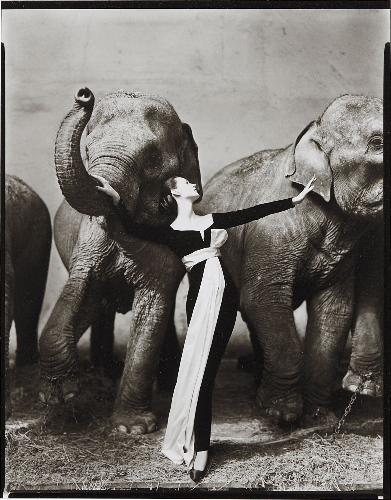 Dovima with Elephants, Evening dress by Dior, Cirque d’Hiver, Paris, August