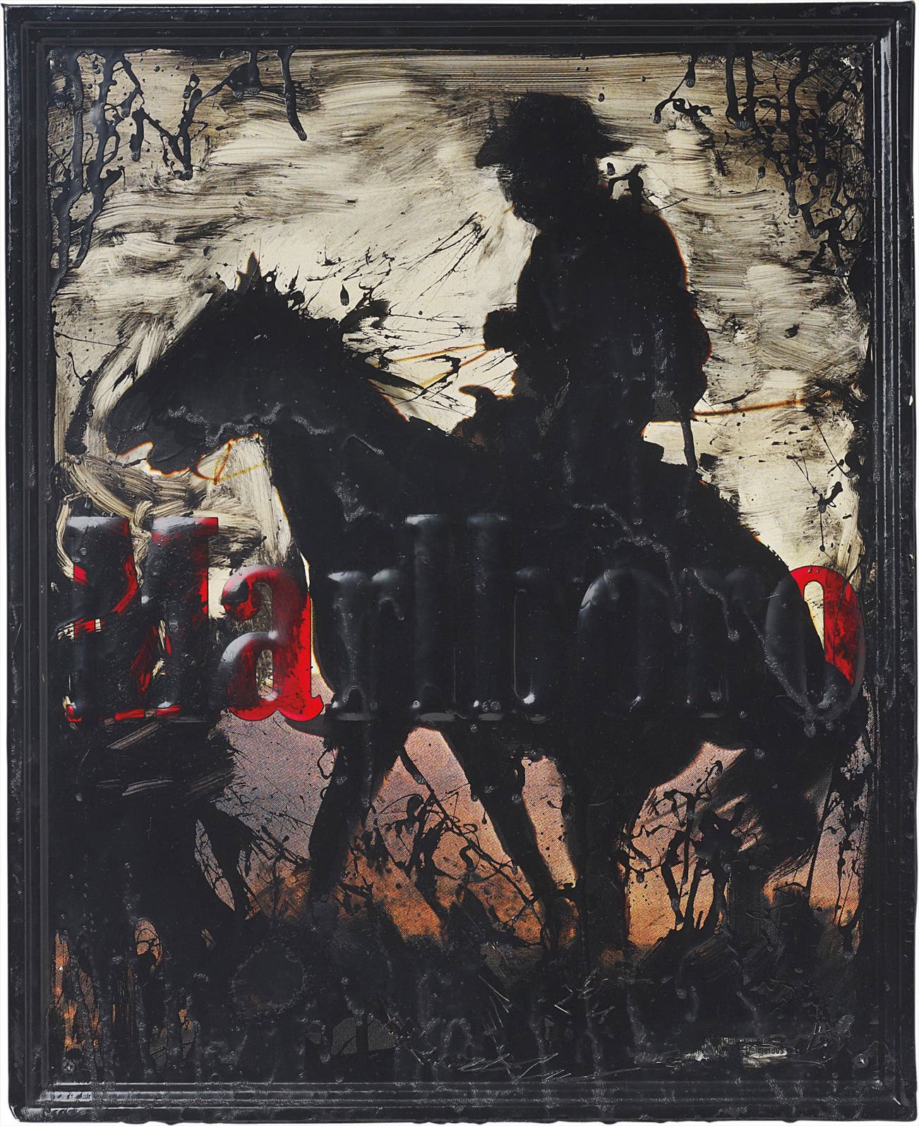 enamel on found pressed metal sign