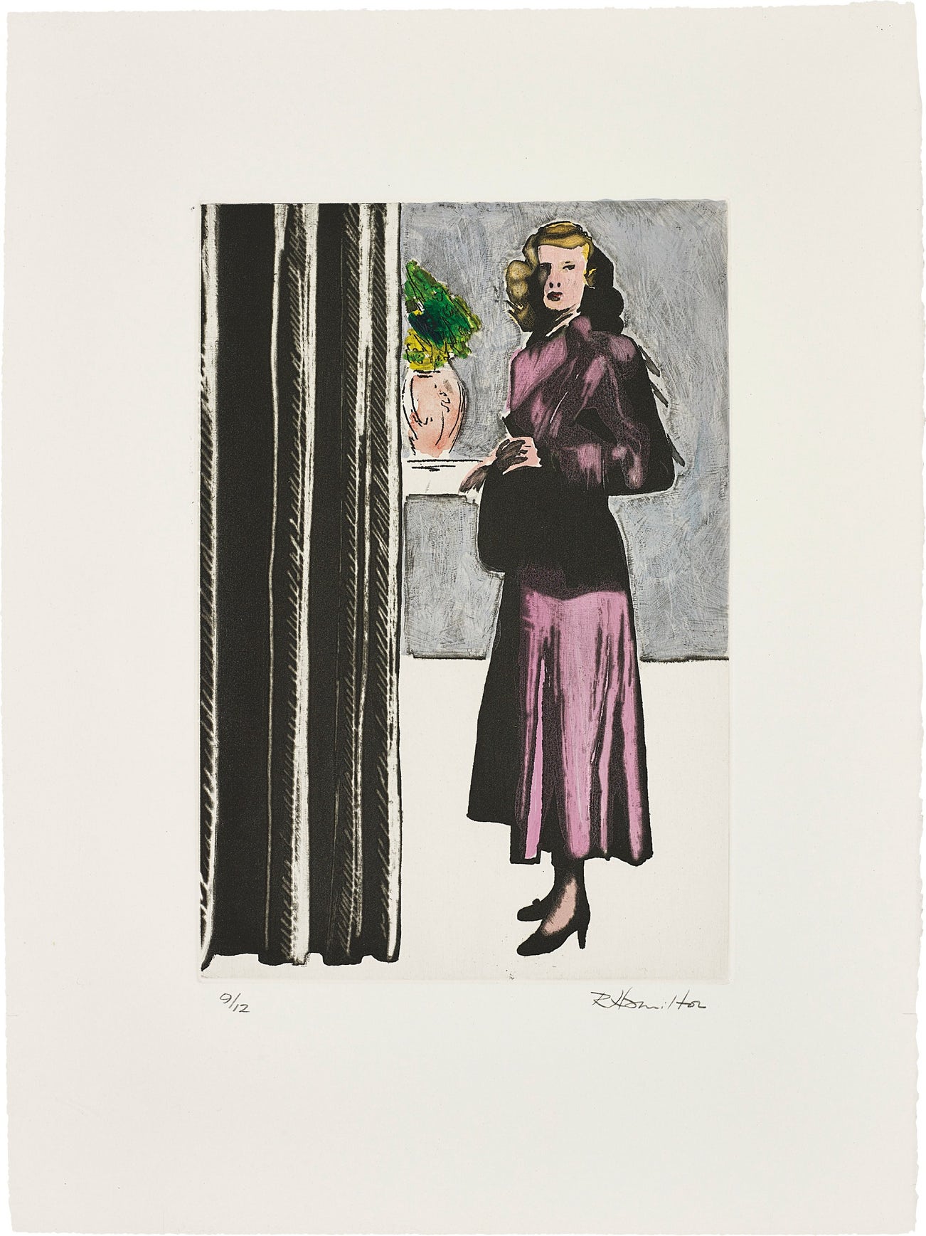Lift-ground aquatint, scraper and burnisher with unique hand-colouring in acrylic, on Rives paper, with full margins.
