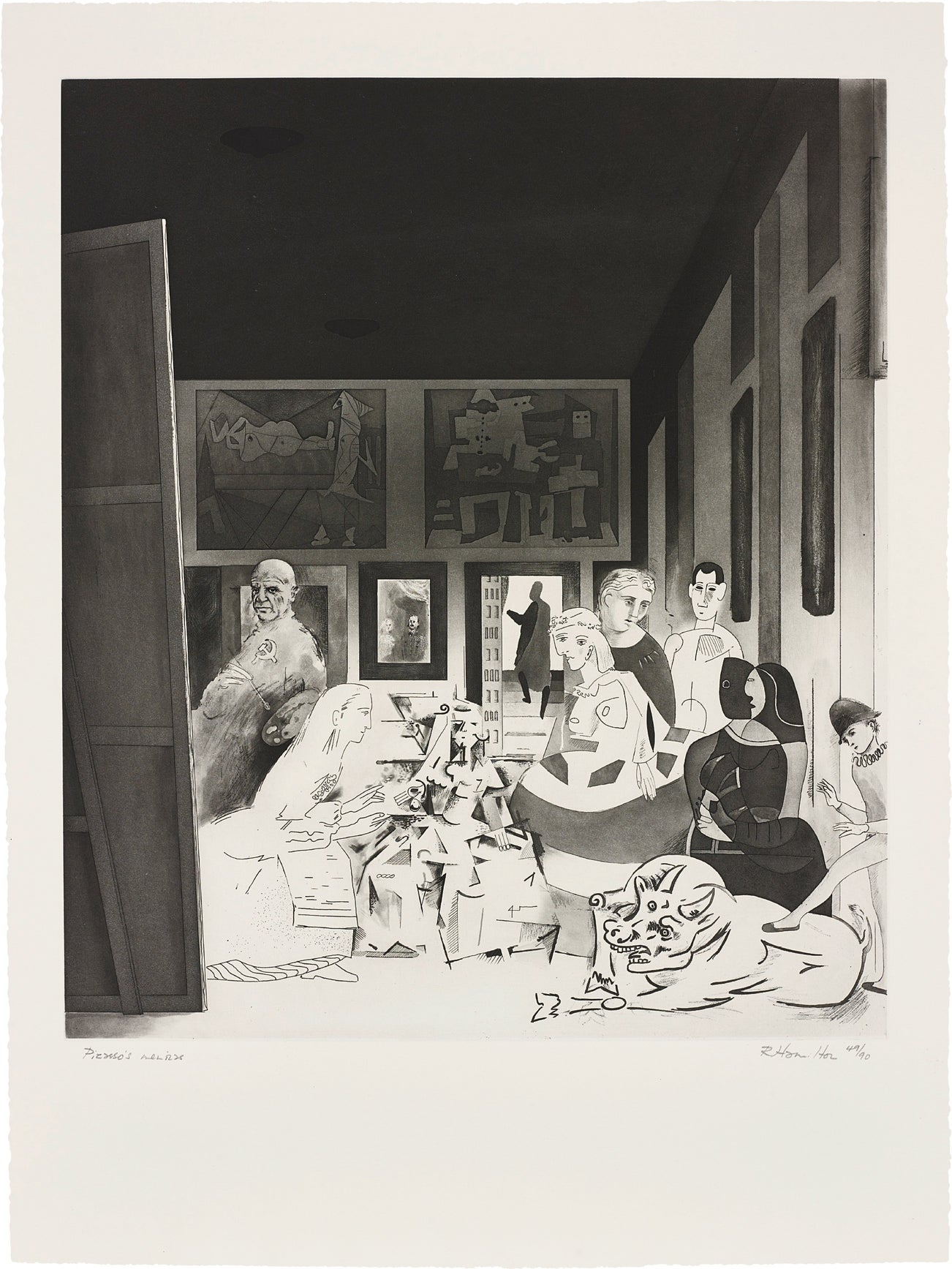 Hard-ground, soft-ground, and stipple etching, with roulette, open-bite and lift-ground aquatint, drypoint and burnishing, on BFK Rives paper, with full margins.