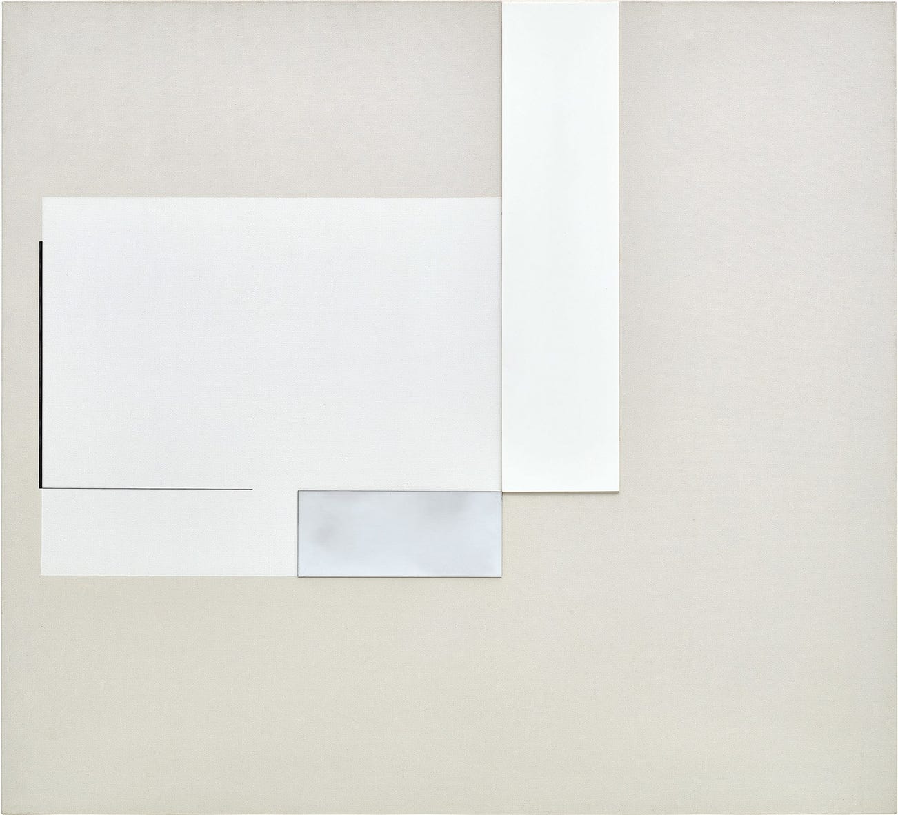 Fusing the elegant geometry of western Minimalist sculpture with the sparse purity of Chinese literati painting, Richard Lin’s master work Painting Relief is a profound meeting of two of history’s most powerful aesthetic traditions. Created at the early apex of the artist’s career in 1963, this large scale piece is an outstanding constituent of the artist’s iconic White Series. Composed of delicately coloured oblongs of aluminium and perspex, Lin balances fields of monotone abstraction which seem to float independently of one another, delineated by acute variations in tone that also spark a dialogue with the concurrently developing movement of Op Art. Wall mounted, yet having a unique presence as relief, Lin crucially interrogates the boundaries between painting and sculpture to create a new space for art that transcends stylistic classification. Born out of his rare position as an artist who travelled between art centres of Asia and Europe in the mid-20th century, in Painting Relief we witness Lin’s profound contribution to a global art history in its nascent stages of becoming; bringing together the western essentialism of minimalist aesthetics with the holistic relations between the micro and macro as expressed in Eastern Philosophical tendencies.