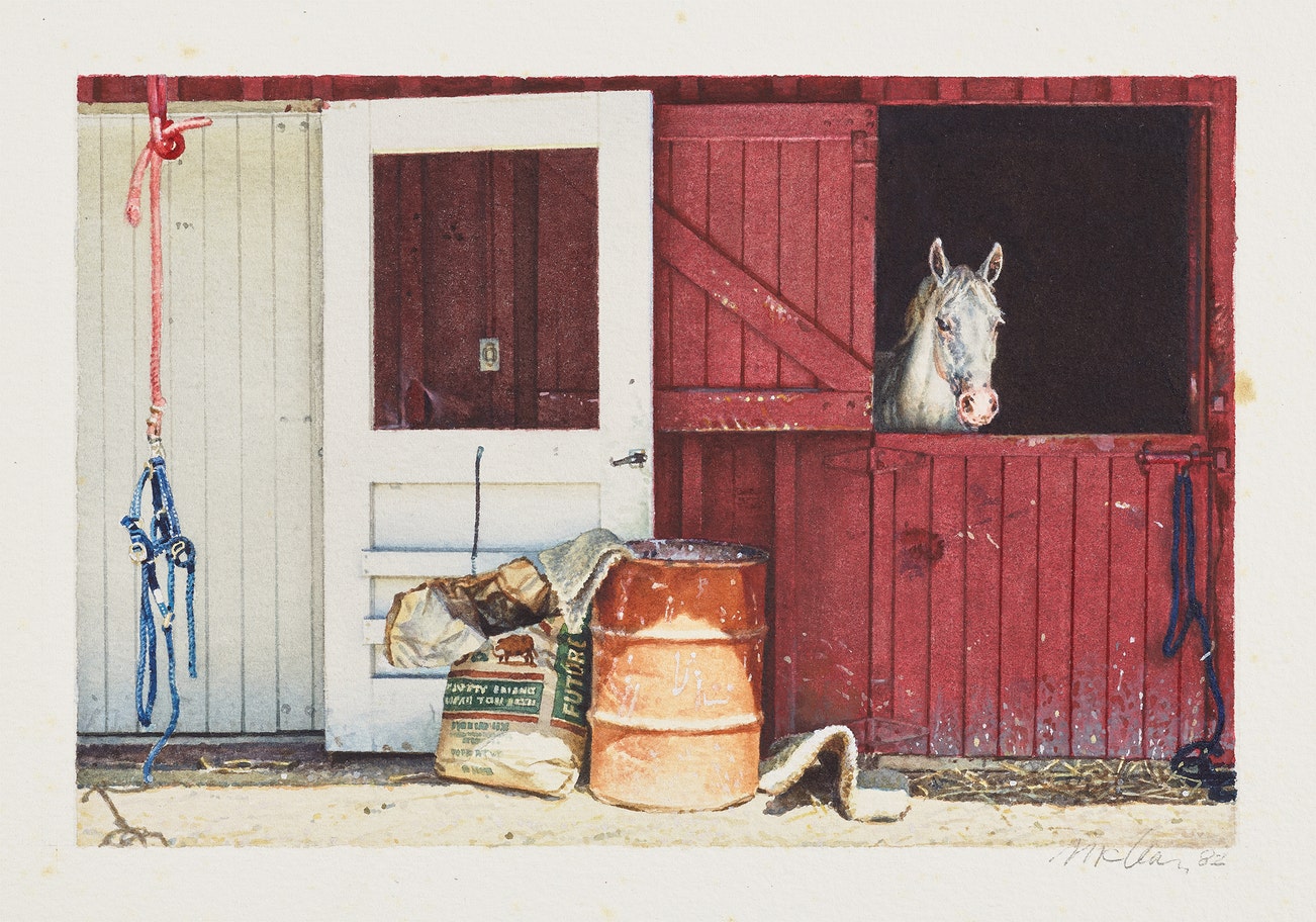 American | B. 1934 D. 2014Washington-born artist Richard McLean was a leading figure in the Photorealist movement, a practice that aims to meticulously reproduce photography in painting. Within this genre, he is best known for his detailed paintings of horses and their riders at racetracks or country fairs in rural California.