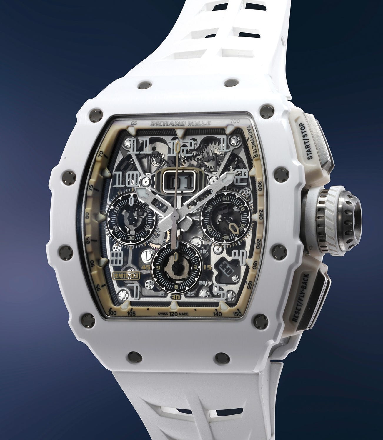 Innovative watches, such as the RM 027 Tourbillon, which was the world’s lightest mechanical watch when introduced in 2011, have helped the brand invert the concept of the luxury watch. Key models include the RM 009 Tourbillon cased in Aluminum Silicon Carbide (AlSiC), the RM 027-02 Tourbillon made for tennis star Rafael Nadal with a case made from quartz and carbon fiber and the RM 008 split seconds chronograph.