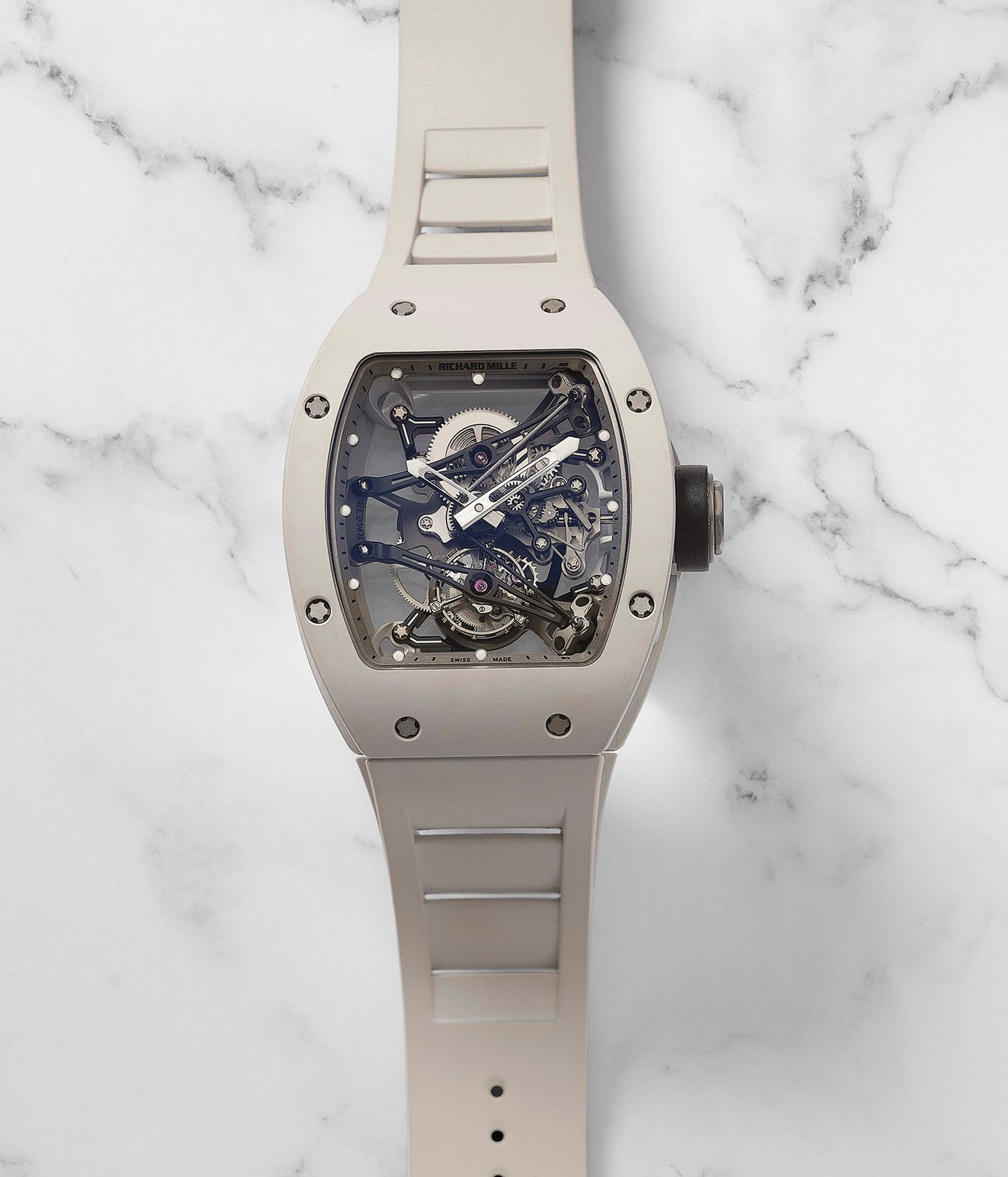 Innovative watches, such as the RM 027 Tourbillon, which was the world’s lightest mechanical watch when introduced in 2011, have helped the brand invert the concept of the luxury watch. Key models include the RM 009 Tourbillon cased in Aluminum Silicon Carbide (AlSiC), the RM 027-02 Tourbillon made for tennis star Rafael Nadal with a case made from quartz and carbon fiber and the RM 008 split seconds chronograph.