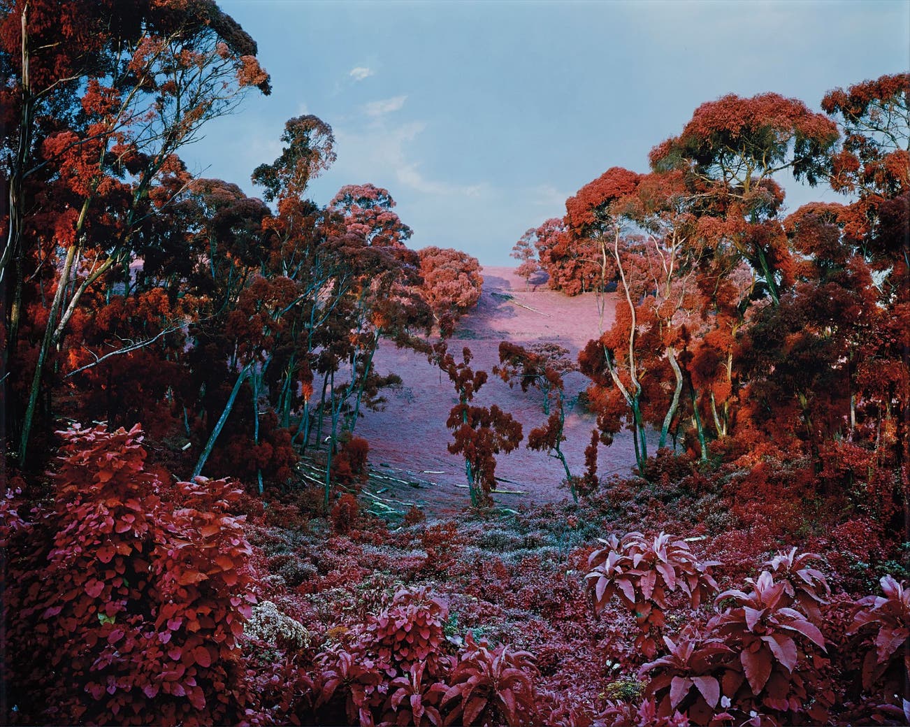 Since Joseph Conrad’s Heart of Darkness, depictions of the Congo have often paired images of the primitive jungle with accounts of violent deeds, creating a politically charged and dark narrative in the Western imagination. Aware of the current political climate and the history of Western notions of the Congo, Richard Mosse sought to document the current state of the country while battling with the constraints of traditional war photography and his position as a white man with a camera. Using Kodak Aerochrome, a colour infrared film originally developed for military reconnaissance, Mosse photographed an area that had been engaged in violent rebellion since the 1990s. This choice of film rendered the lush jungle greens and military uniforms of the rebels in lavenders, crimsons and hot pink, confronting us with an ethereal, otherworldly landscape and turning our visual expectations on its head. As Mosse explains, 'My photography was a personal struggle with the disparity between my own limited powers of representation and the unspeakable world that confronted me'. This haunting series highlights the conflict in the Democratic Republic of Congo and the tension between representation, art, fiction, documentary photography and photojournalism.
