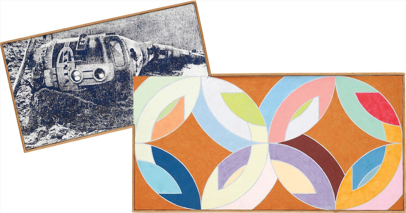 signed, titled and dated 'R. Pettibone "Train Wreck and Love" 1970' on the reverse
