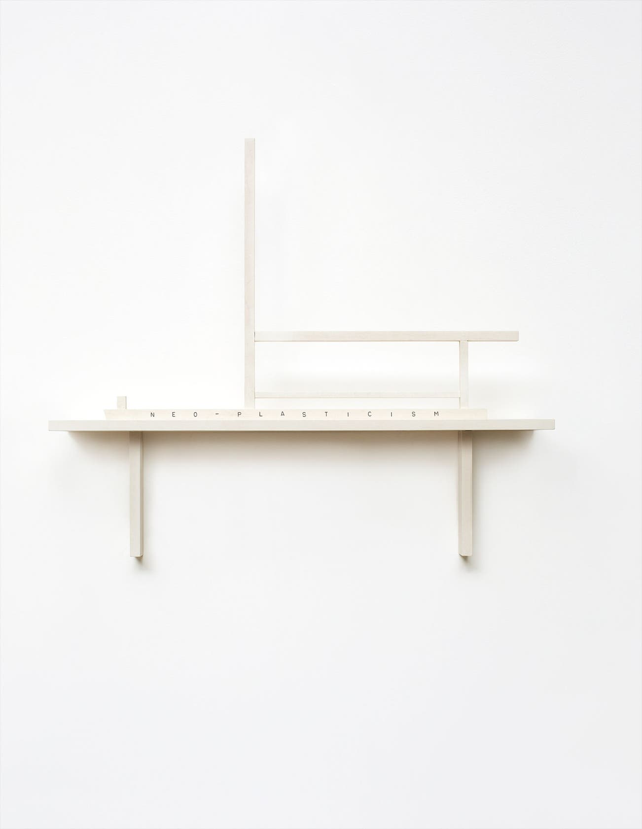 Inscribed with signature, titled twice and dated "NEO-PLASTICISM RICHARD PETTIBONE 1996" on base; further inscribed with initials, title and dated "NEO-PLASTICISM RP 96" on the reverse of shelf.