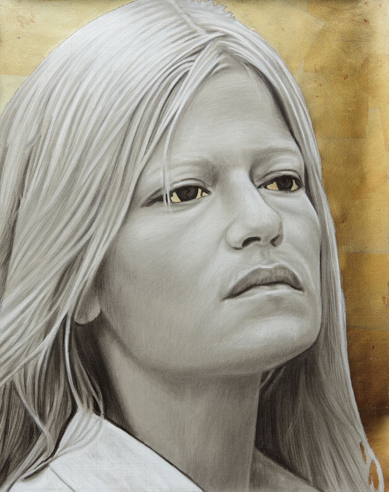 charcoal, chalk, pewter leaf on paper