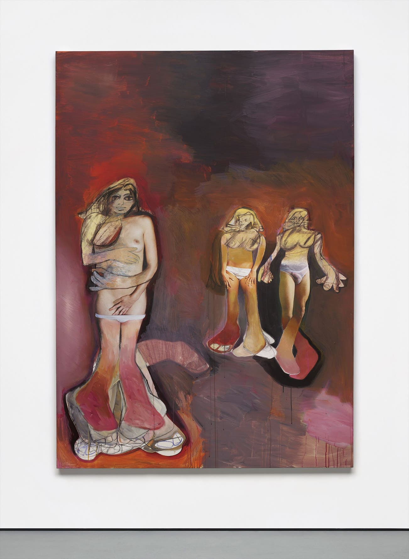 In the creation of the present lot, Prince began by sketching over the catalogue’s colour reproductions, sometimes following the outlines of the sensuous female form, sometimes sketching the figure of a man over the female figure. After then ripping these altered images from the catalogue raisonné, Prince further explored anatomy, figure and form, collating male and female fragments from vintage pornographic magazines and making additions in graphite. The artist then scanned these collages, printing them first as large-scale inkjet prints on canvas before reworking the final painting with paint and oil crayon. The immensely intricate surface shows evidence of the artist’s Freudian explorations: shadows of pentimenti linger, revealed in the many hands and feet of the painting’s figures.
