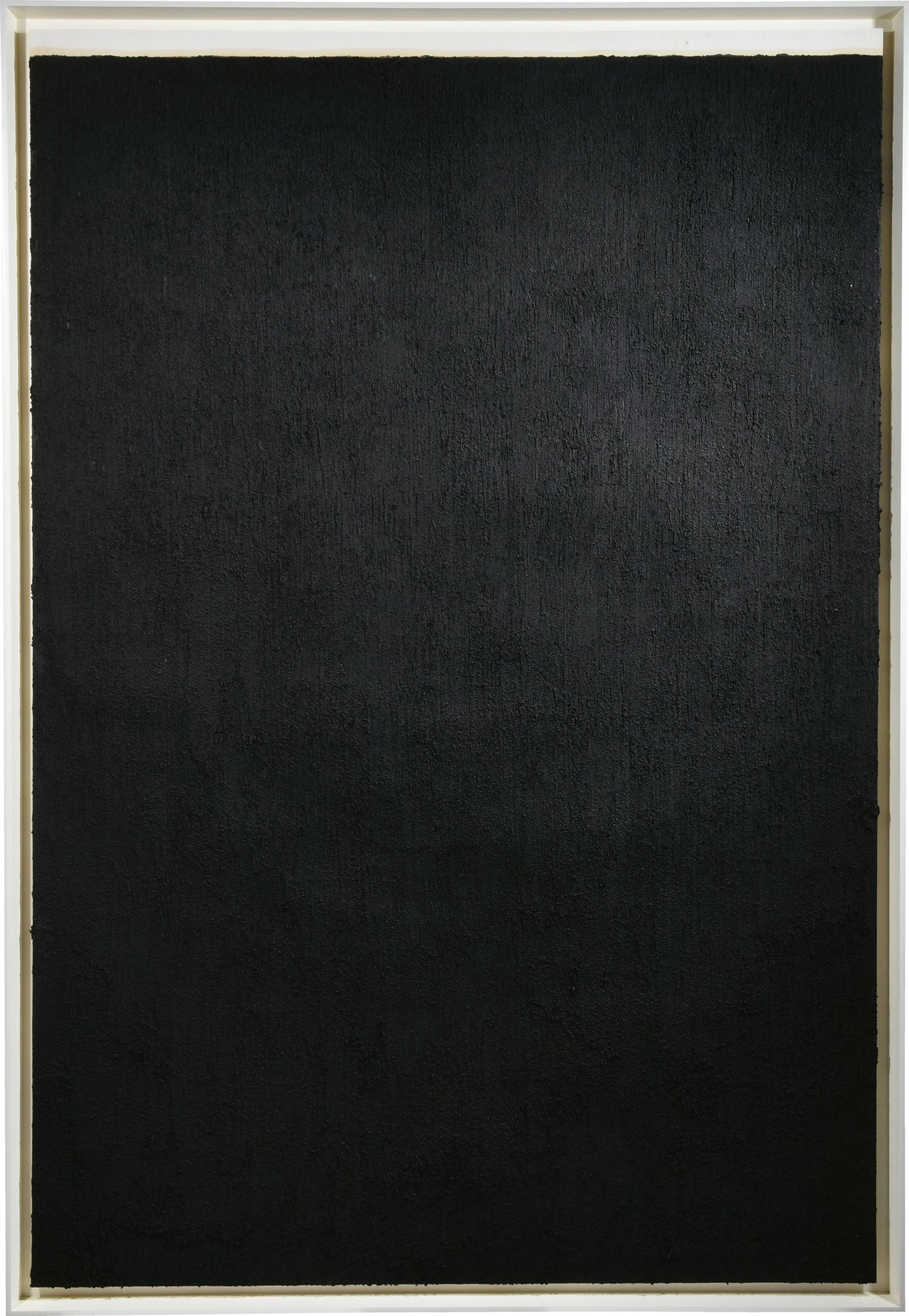 A prodigious study in space, light and matter, Elevational Weights, Vertical Mass belongs to Richard Serra’s eponymous series of paintstick drawings created in 2010. Delving ever-deeper in his investigation of the colour black, Serra here allows the pigment to run across the quasi-totality of the handmade paper, equating the paintstick’s density and thickness to sculptural matter and thus transforming two-dimensional space into a haptic arena. ‘In terms of weight’, he declared, ‘black is heavier, creates a larger volume, holds itself in a more compressed field’ (Richard Serra, quoted in From the Collection: 1960-69, exh. cat., Museum of Modern Art, New York, 2016, n.p.). With the present work, Serra substantiates his claim by endowing the penetrating hue with a true weight; one that he dubs ‘elevational’, perhaps due to the horizontal section of white paper that haloes the rest of the heavy composition. A testament to the importance of this series within Serra’s wider body of work, three examples from the artist’s collection were shown at Serra’s first-ever retrospective of drawings, travelling from the Metropolitan Museum of Art, New York, to the San Francisco Museum of Modern Art from October 2011 to June 2012.