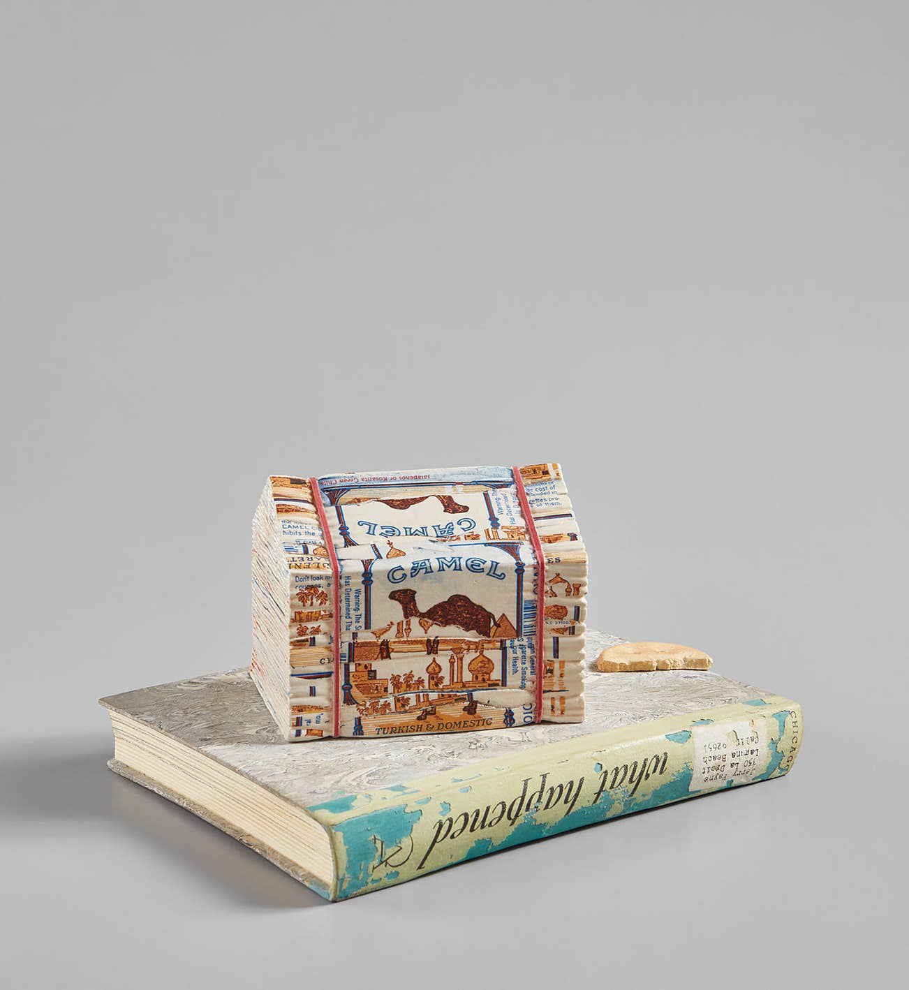 A student of both Peter Voulkos and Robert Arneson, Richard Shaw was a leading proponent of the Super Object movement in California ceramics, known for its exaggeration of everyday objects. Inspired by eighteenth-century English Staffordshire porcelain and his fellow student Ron Nagle’s use of china paints, Shaw experiments with airbrushing, underglaze painting, and photo-silk-screening to ultimately achieve his signature trompe l’œil style. Shaw’s meticulously detailed still life sculptures address, in his own words, “a person memorializing their identity using the objects from their personal narrative… their pastimes, intellectual pursuits, sins, habits good and bad, obsessions, etc.” Shaw’s sculptures are in the permanent collections of the Whitney Museum of American Art, New York, Los Angeles County Museum of Art, and the San Francisco Museum of Modern Art, among others.