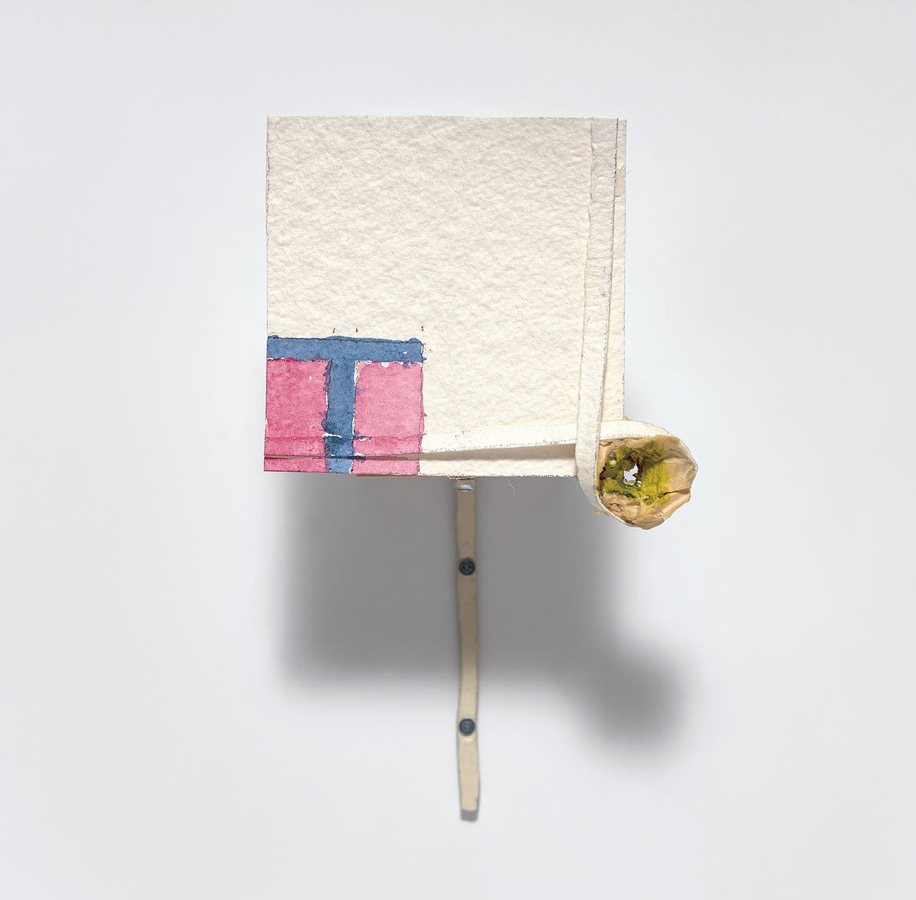 paper, acrylic, papier-mâché, hammered aluminum armature wire, graphite, hot glue, wood and screws