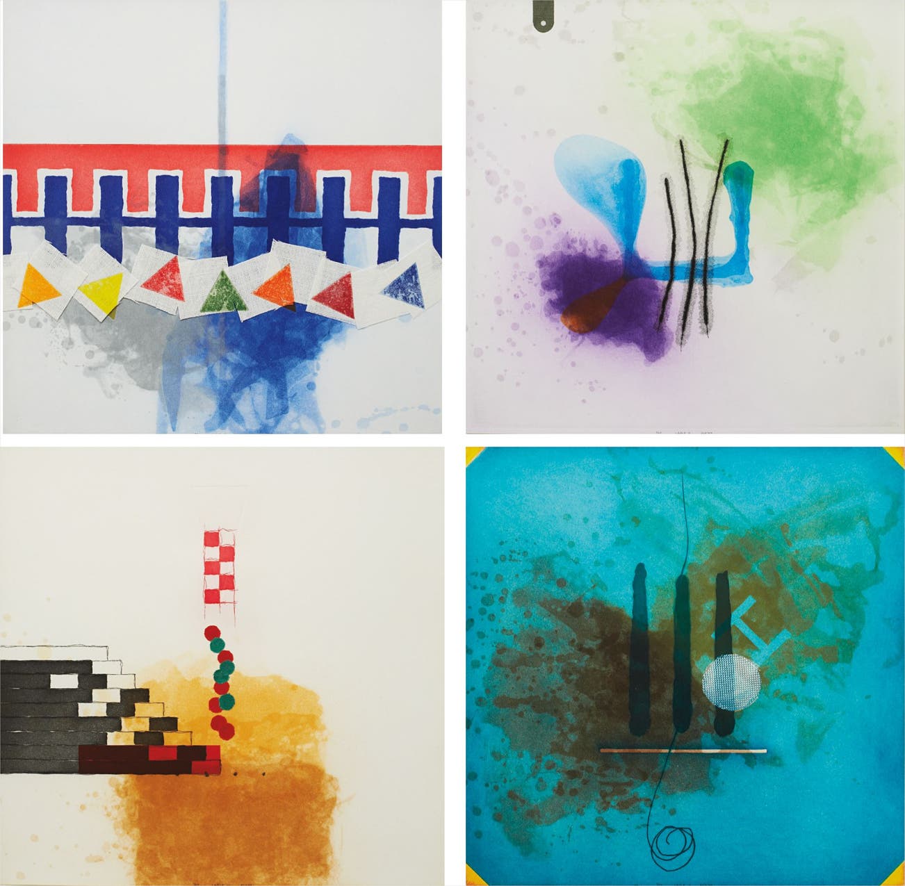 The complete set of four etchings with aquatint, drypoint and fabric collé, on wove paper, the full sheets,