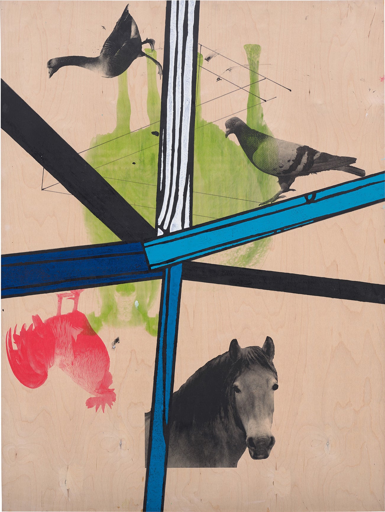 acrylic and silkscreen on plywood