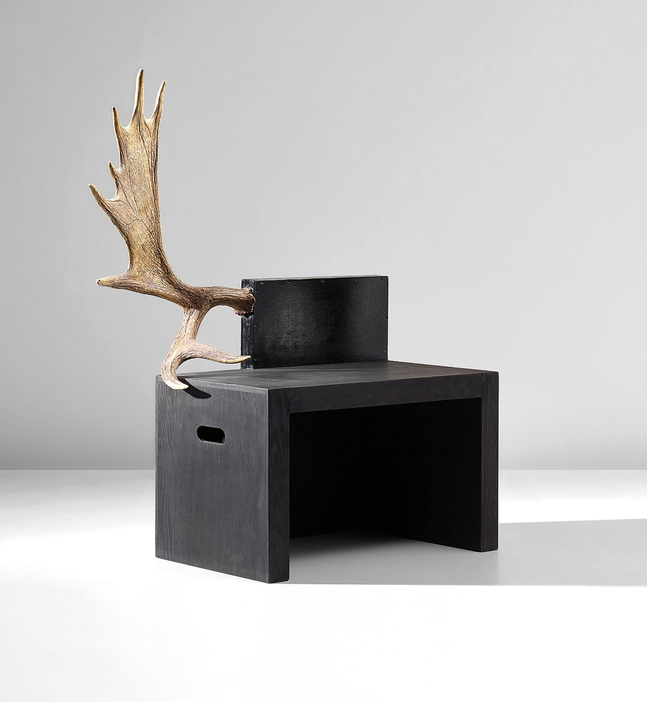 Stained elm plywood, painted wood, moose antler.