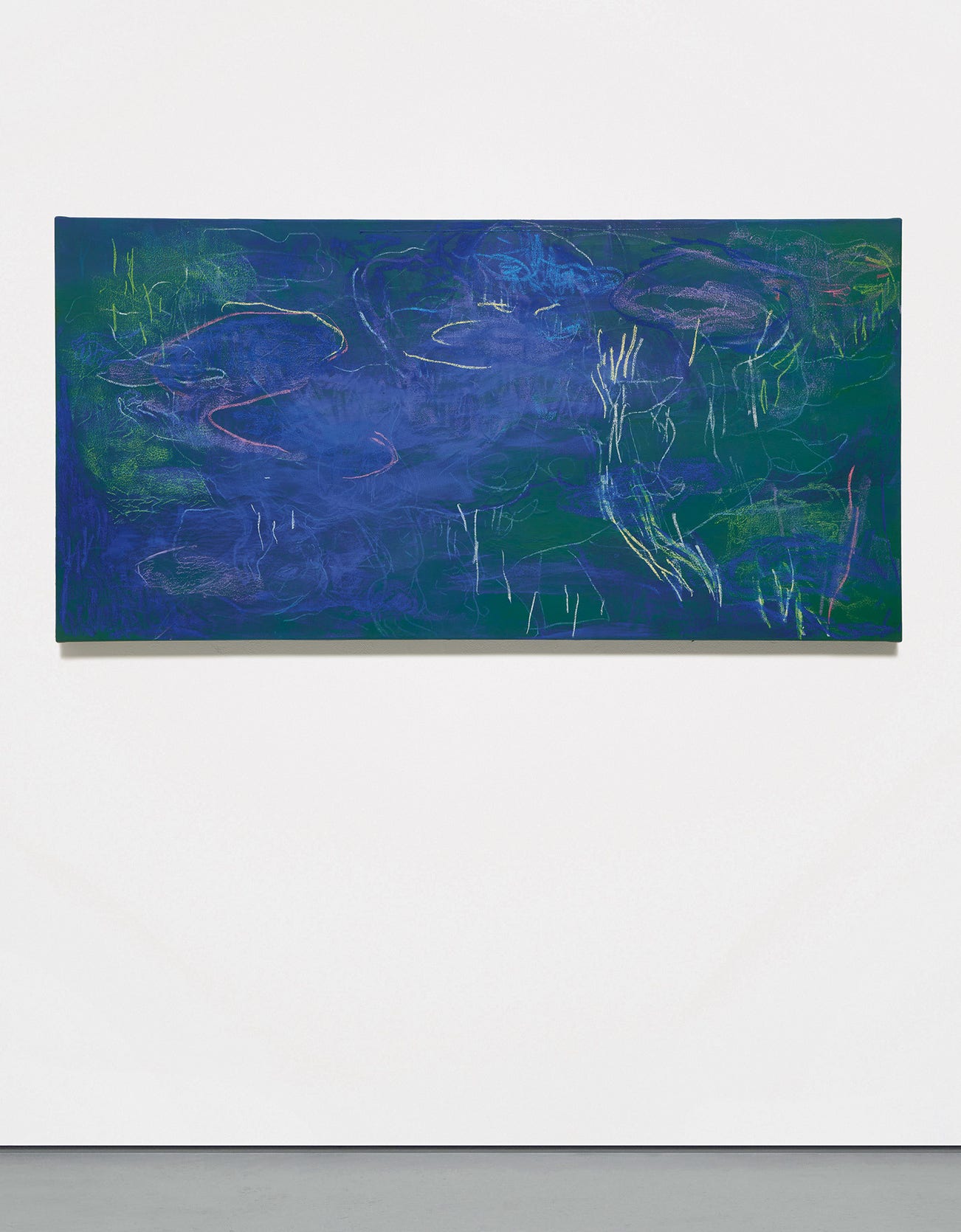 acrylic, oil, pigment, pastel, chalk and spray paint on canvas